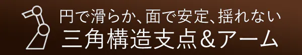 回転の滑らかさとグラつかない揺れない安定性を両立させるために、選ばれたのは「三角形」の支点でした。