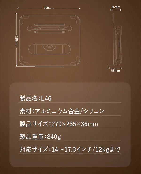 14~17.3インチ(12kg以内)であればどんな端末も乗せられます。