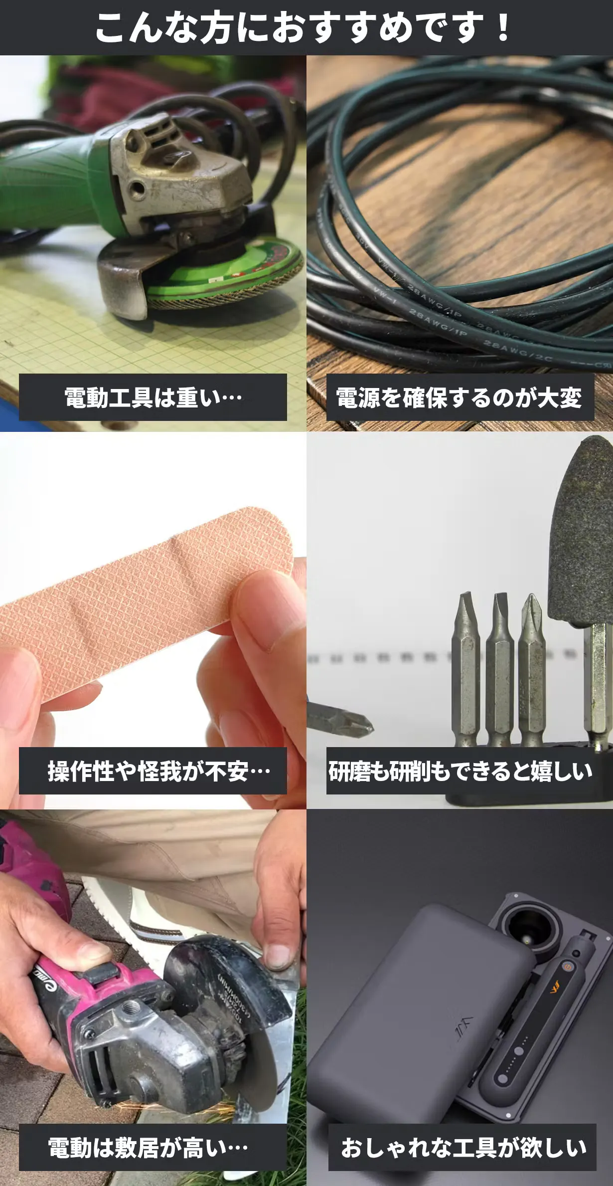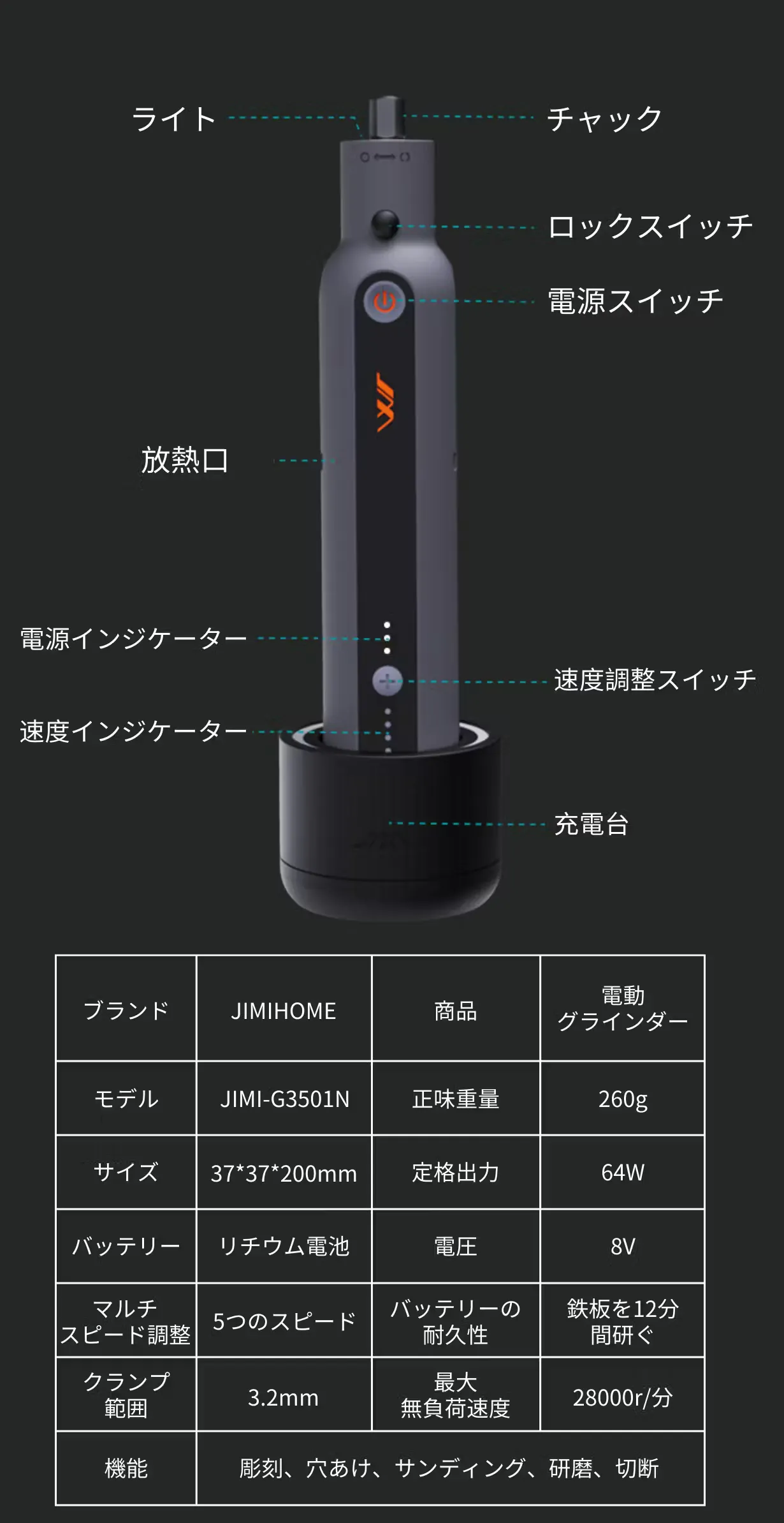 JIMI GRINDER SETは、電動工具とは思えないスタイリッシュさが魅力です。