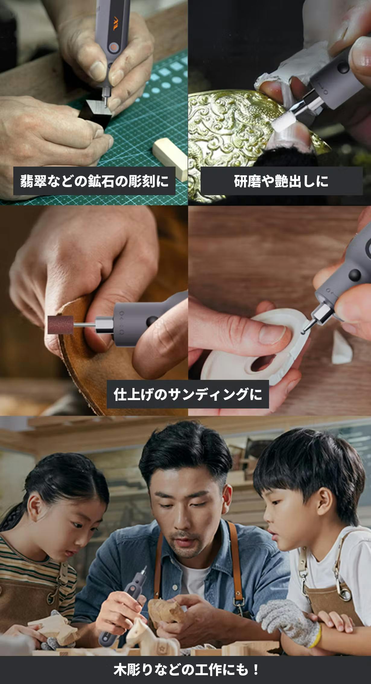 今回提案する商品は、彫刻・サンディング・研磨が簡単に安全にできる工具セット。ぜひこれを広めたい、今までとは違った視点で提案できれば良いなと思いプロジェクトの立案に至りました。