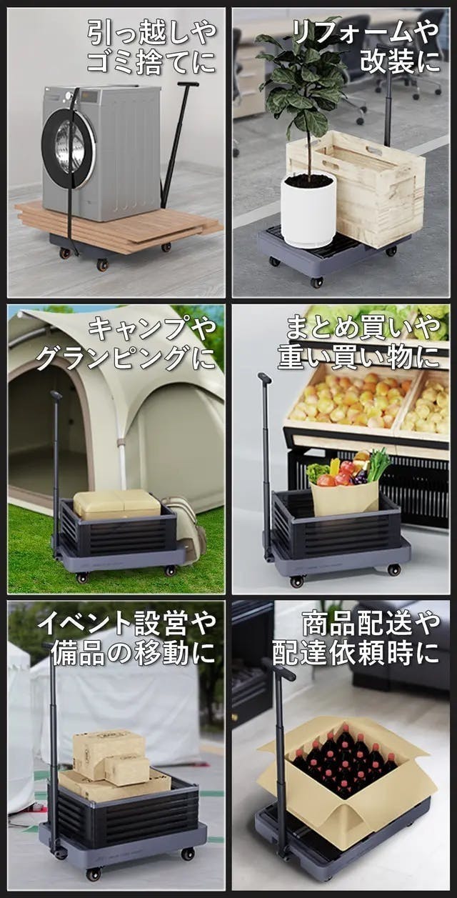 2way変形機能はカートに多様性を加えます。ボックスモードは小さな不安定なアイテムを運ぶのに最適で、フラットモードは大きな安定したアイテムを輸送するのに適しています。この柔軟性により、引っ越しから買い物、イベントのセットアップ、キャンプまで、さまざまなシナリオに適しています。