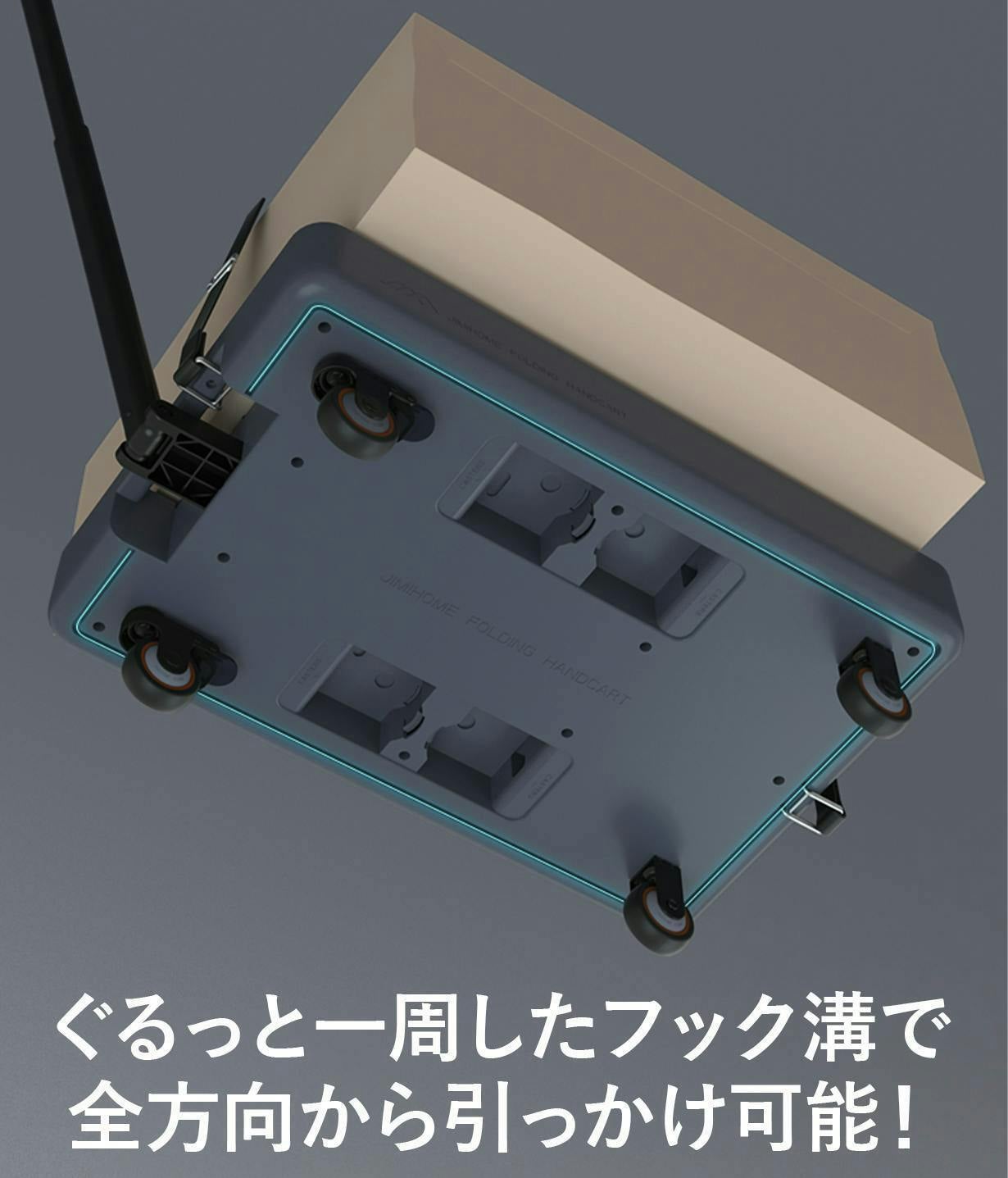 カートには輸送中にアイテムを固定するための専用バンドが含まれており、揺れを防ぎ、安定性を確保します。フック溝とフックメカニズムは、荷物を確実に固定するための正確な制御を提供し、JIMI Cartをさまざまなシナリオで頼りにできる選択肢にしています。