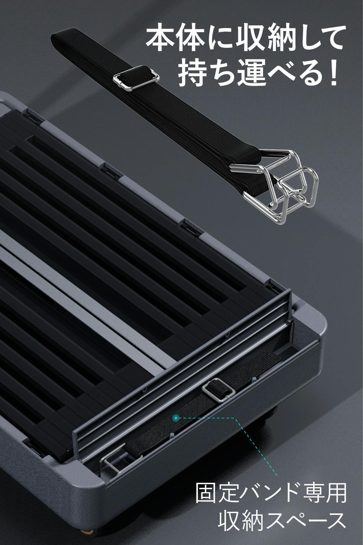 洗練された外観に加えて、JIMI Cartのユーザーフレンドリーなデザインは、簡単に収納でき、いつでもアクセス可能な固定バンドなどの機能にも広がります。紛失したバンドを探す手間はもうありません。それらは便利にカート自体に収められています。多目的なフック溝とフックメカニズムにより、アイテムの確実かつ全方向への固定が可能で、輸送中にあなたの所有物が安全に保たれます。