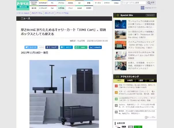 2023年11月25日、トラベル Watchで「JIMI Cart」を紹介して頂きました。