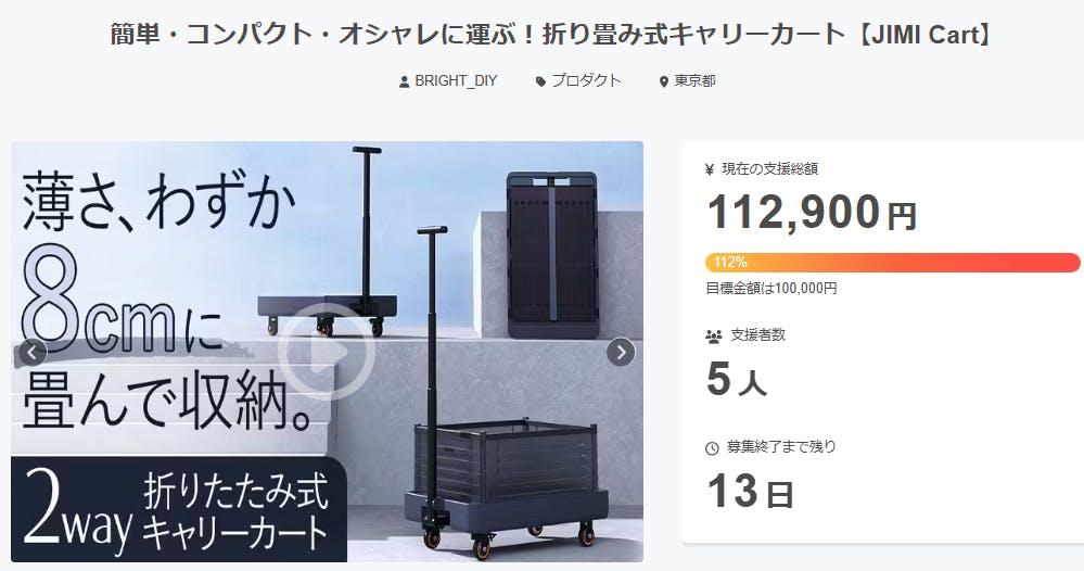 皆様、こんばんは!Bright DIYチームです。2023年11月25日、トラベル Watchで「JIMI Cart」を紹介して頂きました。/話題:厚さ8cmに折りたためるキャリーカート「JIMI Cart」。収納ボックスとしても使える興味がある方、是非下記のリンクからアクセスしてみてください!https://travel.watch.impress.co.jp/docs/news/1549702.html\以上、Bright DIYチームでした!ご興味のある方はこの機会をお見逃しなく!https://camp-fire.jp/projects/view/800934Brightチームは、当プロジェクトをもっと多くの方に知っていただきたいと考えております。よかったら、SNSでのシェア・拡散をお願い致します。#jimihome #brightdiyどうぞよろしくお願い致します。Brightチーム