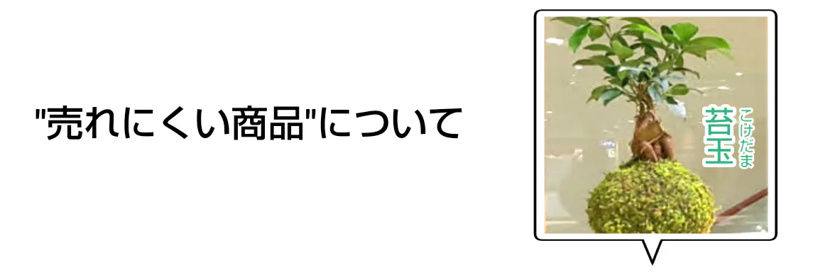 〜例えば…「苔玉」などニッチな商品は、店長さんが、かなり努力されていてもなかなか認知に繋がりにくく、苦労されている事が多いです。話しを伺うと、売れないからといって広告を出すお金がない…