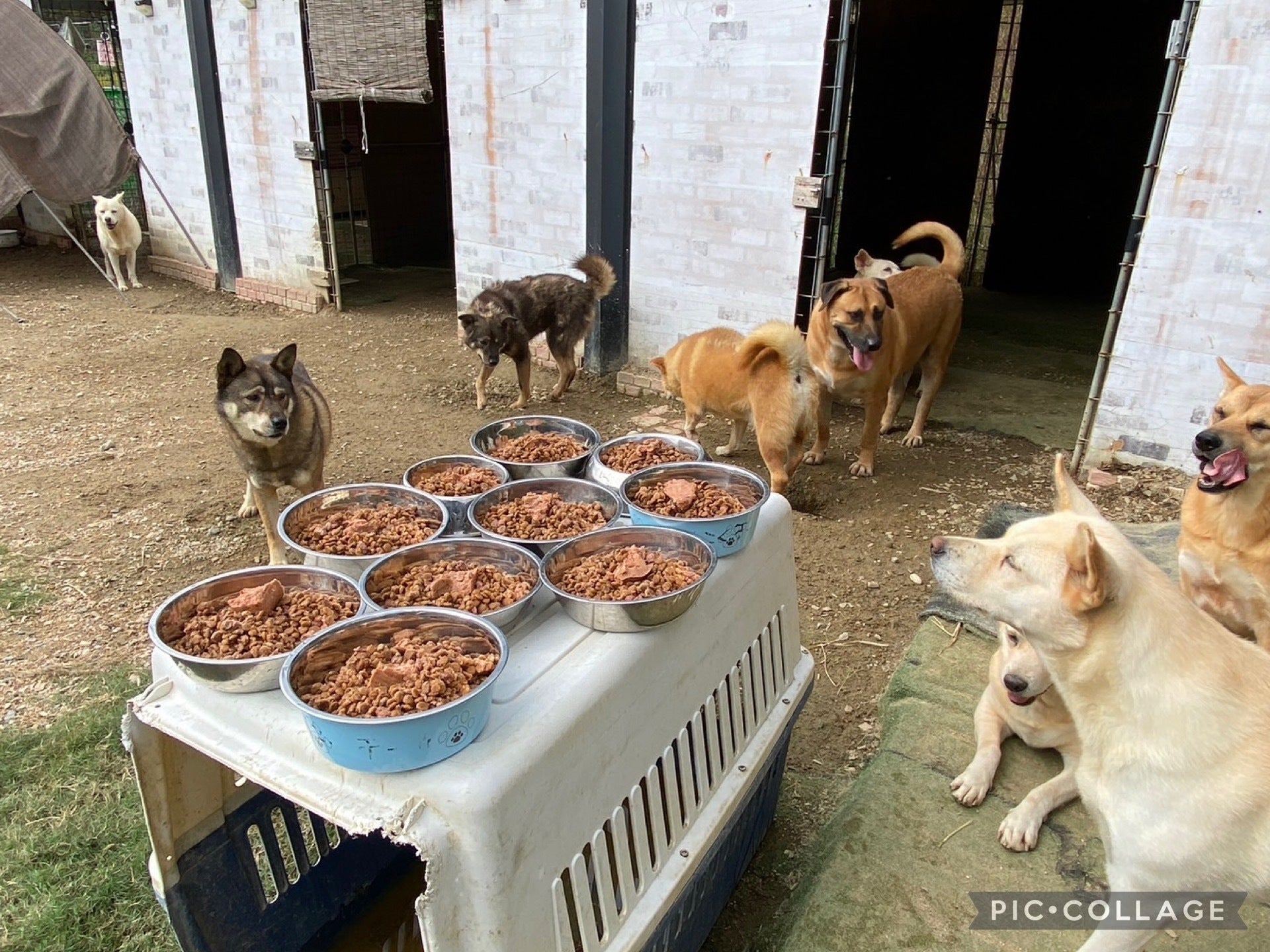 韓国の犬食肉屠殺場からレスキューされた子たちです。来たばかりの頃は小屋から出られない子たちでしたが、今は人を信じてくれるようになりました。みんな穏やかな良い子たちです。