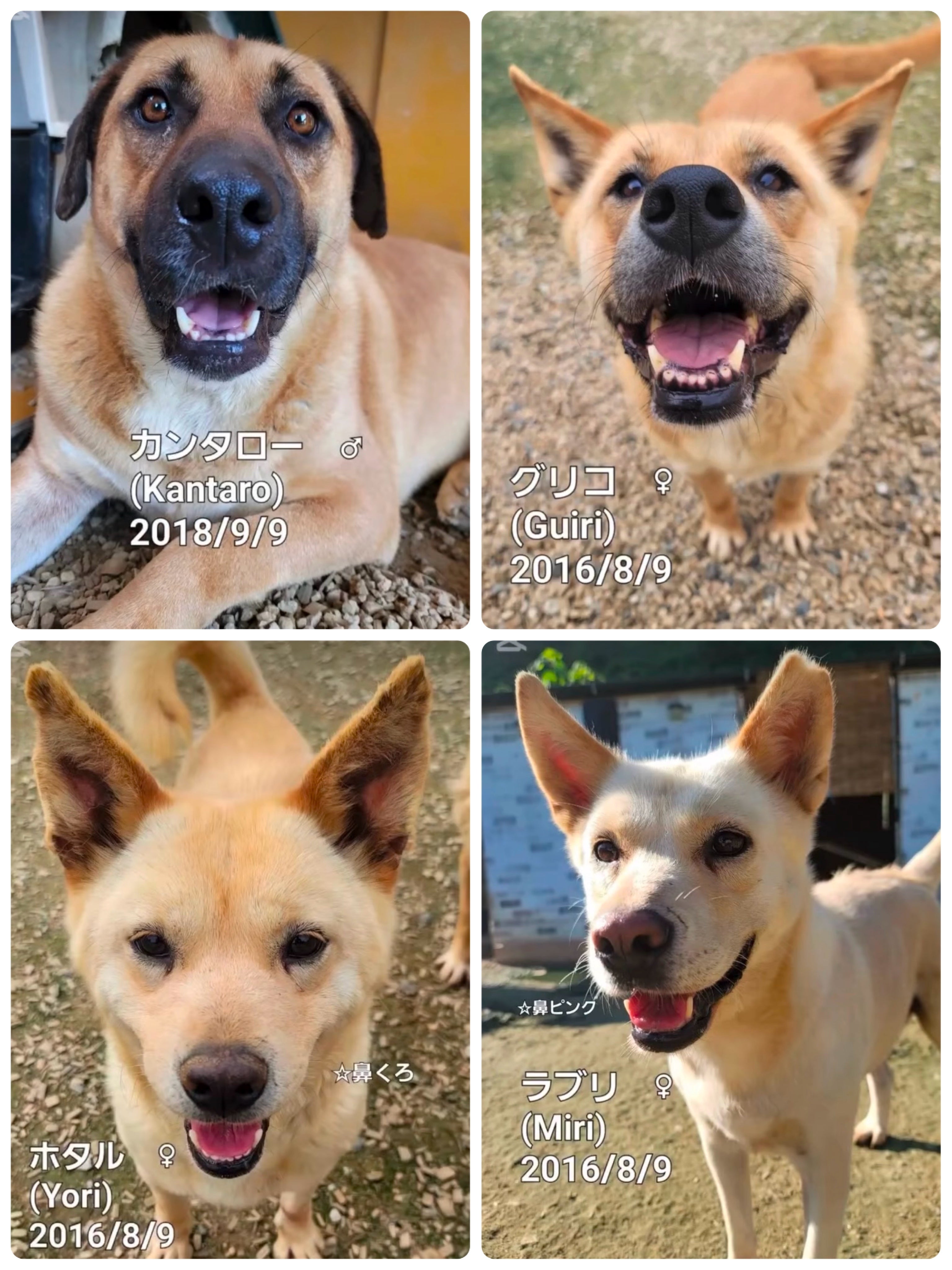 ガンマンさんの投稿から 〘 全ては 笑顔のために 〙私たち 人間も、そして動物も突き詰めれば 何の為に 生きるのだろうか。悲しむためだろうか怒るためだろうか、それとも傷付く為だろうか。物欲や性欲、見栄や虚栄心に満ちた人間と餓えに耐え、寒暖に耐え、怪我や病気にも耐え 頑張る動物たち。全ての生物の ただ一つ、生きる純粋な目的それは、〔笑うこと〕であると、私は 断言する。昨日、泣いて いた者も昨日、殺されかけた 者も今日は笑っていたい、明日も笑っていたいただ、この想いで みんな 頑張って 生きる。生きたまま、バーナーで 焼き殺される 寸前だった12匹の 韓国犬たちの 悲喜こもごもの 表情の中で笑いが にじみ出て来た 今日 この頃。だから 生きている今こそ 生きているそして 生きているこんな 言葉が この子たちの 全身から溢れ出て いる。人生も、犬生もそう、たかが 喜び ごっこしかし、されど 喜び ごっこなのだ。ganmanプロジェクト作成者 笠井玲子より韓国の首を吊りバーナーで焼き殺す残酷な屠殺場からわんにゃんランドへきた韓国わんこたち。今では笑顔を見せてくれるようになりました。そして触らせてくれる子も数頭います。仲間たちがひどいことをされてきて人間が怖くて仕方ないだろうに、今では人間を信じてくれています。行き場がなくなった韓国わんこたち、日本のわんにゃんランドへたどり着き、ここで命を輝かせていっていいんだよ優しいカンタロウ。わんにゃんランドでは笑顔を見せてくれるようになりましたカンミちゃんジョンス君。兄弟のとも君とそっくりで、いつも一緒にいます関東のしっぽのみかたに来たチェリーちゃん。3年たってやっとお散歩ができるようになりました