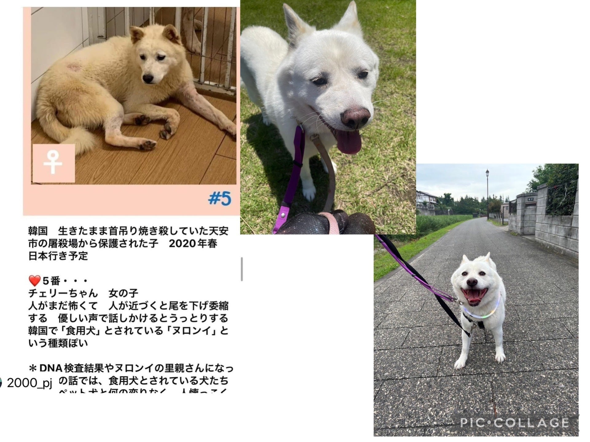 韓国の屠殺場からきたチェリー韓国の犬肉食のための屠殺場からわんにゃんランドへきたチェリーチェリーたちのいた屠殺場は、生きたまま紐でつるされてバーナーで焼き殺すという残酷な殺し方をする施設でした。施設にいる子たちは仲間が殺されていく叫び声、焼ける匂いを感じながら次は自分の番では?と震えながら生きてきました。そんな地獄から救い出されわんにゃんランドへきた12匹の子たちは酷いトラウマを抱えていましたが、わんにゃんランドへきて怖いながらもおやつやご飯をくれるガンマンさんを信じるようになったのです。チェリーはシェルターへ遊びに来る女の子が大好きで笑顔でついて回る子だったため、東京でしっぽのみかたの預かりの家をしてくれている、キアナちゃんの家へしっぽのみかたの保護犬として、東京へきました。東京へ運ぶ際、キャリーに入れるとき、殺されるのかと思ったようで、悲鳴をあげて大暴れして抵抗して血だらけになったほどでした。キアナちゃんも泣き「もうやめて!」と叫びました。やっとのことで東京にきたチェリーは、お家の人になれるのは早かったのですが、どうしても紐を見ると、叫んでかくれてしまいます。1年ほど経ってやっと首輪とリードができたものの獣医さんへ連れていこうとしてどうしてもキャリーに入れず、鎮静剤を使いやっと診てもらうことができたのですが、またリードができなくなってしまいました。そして昨年の桜の時期にトレーナーさんの指導もあり、首輪、リードをして外へでて桜の花の下をお散歩することができたのです。わんにゃんランドがなければ救うことが出来なかったチェリーチェリーと同じようにわんにゃんランドはたくさんの命を救って、命を輝かせてきました。そんなわんにゃんランドをなくしたくない‼今、わんにゃんランドにいる子たちもこれから救える命も輝かせていきたいのです。わんにゃんランド移転プロジェクトにどうぞご協力ください↑右下はわんにゃんランドにいる頃。他3枚は東京の預かりの家に着いたところです。☆こんなチェリー8歳は今、しっぽのみかたよりずっとの家族募集中です