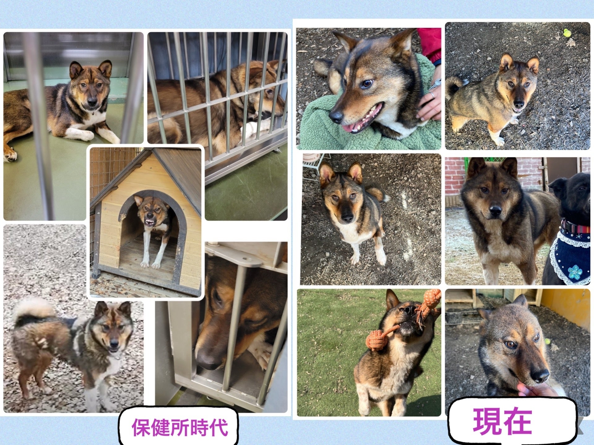 〈アキラのについて〉アキラは迷い犬として下関のセンターに収容された元飼い犬でした。首輪をしていたものの、飼い主は名乗り出ず、吠え声や唸り声が目立ち、殺処分の対象となってしまいました。そんなアキラを救うため、ディアンクさんがガンマンさんに依頼しわんにゃんランドに引き取られることになりました。当時ディアンクさんが、マサとアキラを1匹ずつ2回に分けてわんにゃんランドへ連れてきてくれました。その際に生後4か月の10匹の子猫がいたのですが、ガンマンさんには子猫10匹の飼育は無理だと思ったディアンクさんは半ば強引に子猫10匹を引き取ってくださいました。そして最近のアキラは隣室のはじめと口喧嘩はしますが人が大好きな淋しがりやの甘えん坊で、おもちゃを持ってきては遊ぼう!と甘えています。保健所での吠えや唸りは捨てられた戸惑いや恐怖からの行動だったのでしょう!下関センターでは理由が無ければ殺処分されないと聞きますが、アキラは飼い主を見つけるのは難しいため、わんにゃんランドに来なければ、その運命を辿っていたかもしれません。今のアキラの幸せそうな様子を見ていると、彼がわんにゃんランドで幸せを感じていることが伝わってきます。こんなに可愛らしい良い子が命を奪われずに済んで、本当に良かったと心から思います。 笠井玲子 ボクとも遊んで~氷を食べるのが好きです