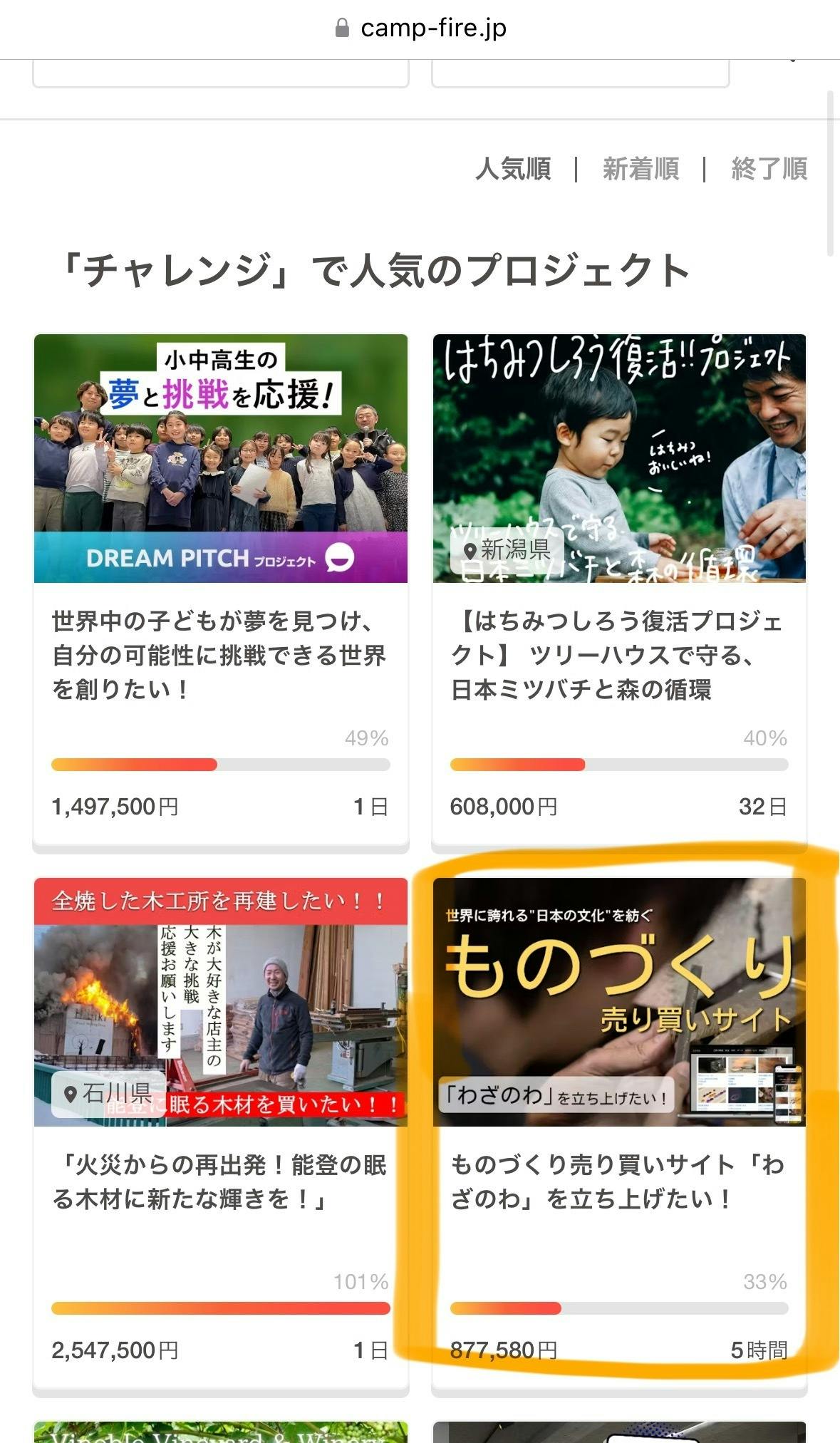 「わざのわ」のチャレンジは、本日0時をもって終了となりますが、現在、凄い勢いで伸びています!
