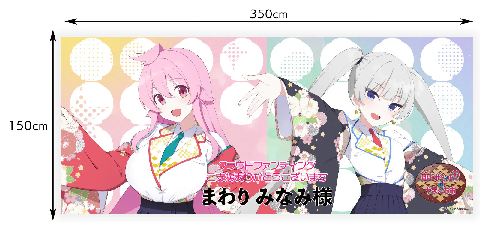 萌えサミットのイベント拠点の中心商店街に、お名前入りの横長タペストリー(横350cm×縦150cm)を掲示するコースです。