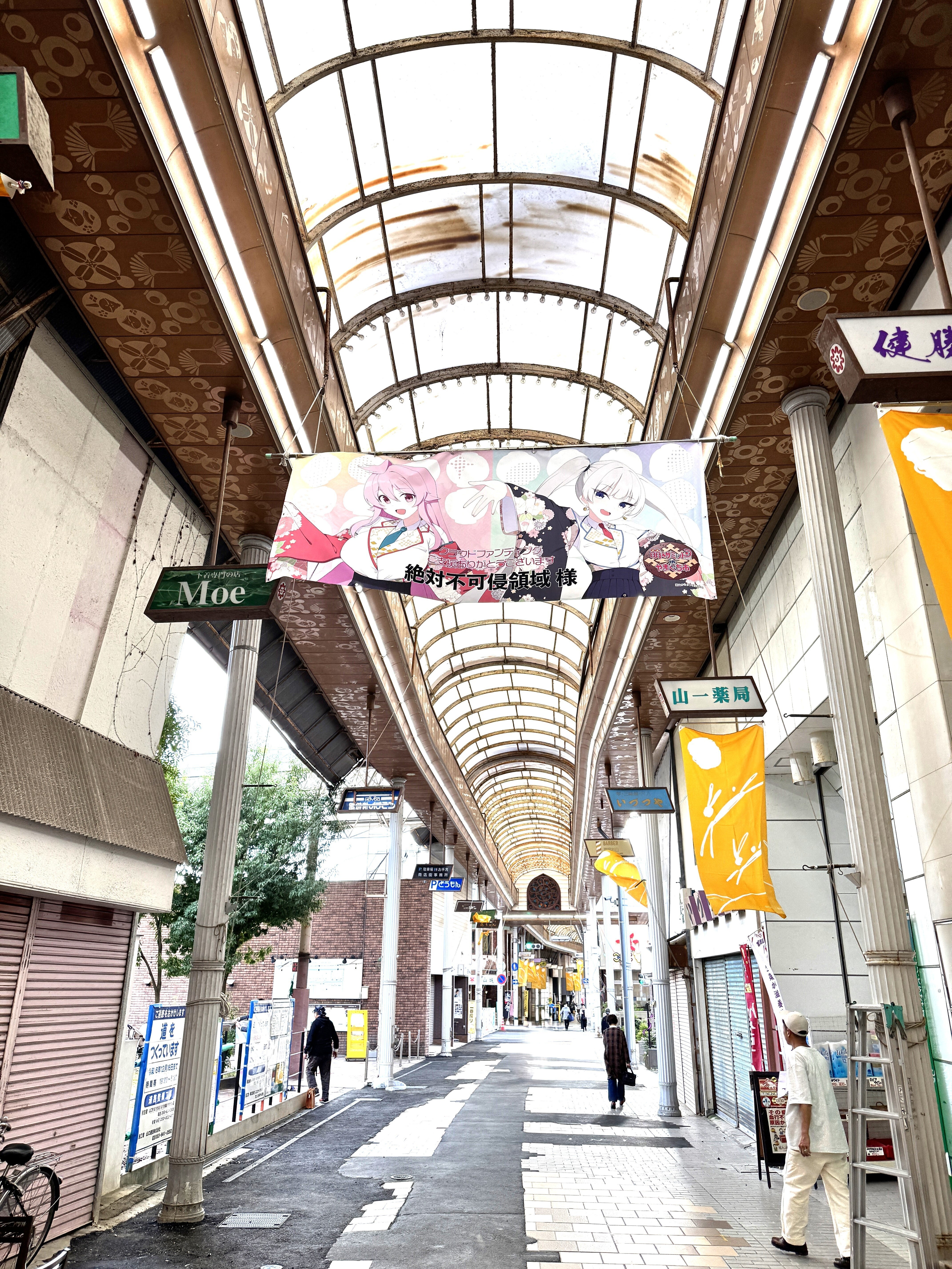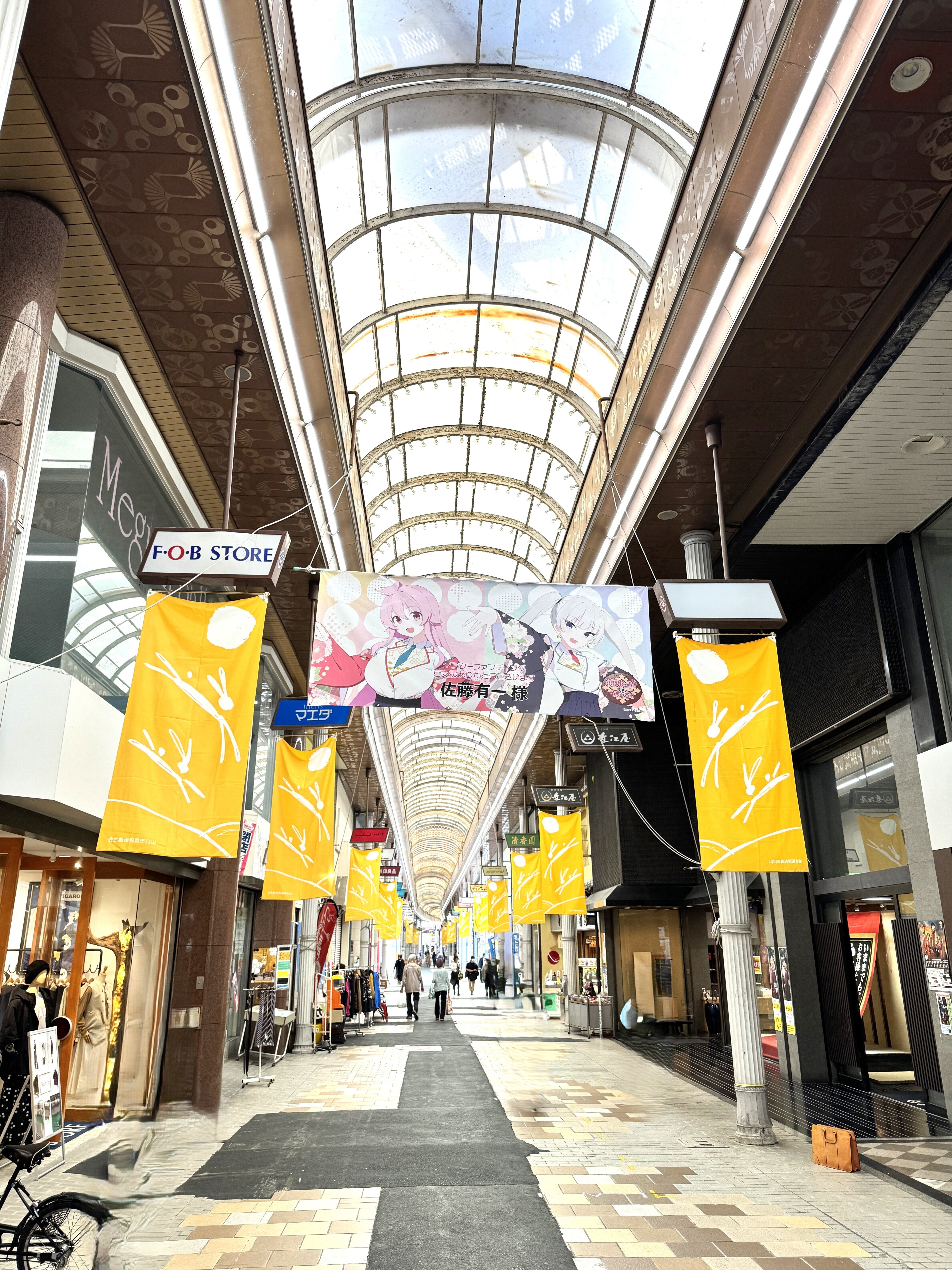 萌えサミ前日にはのぼりを設置し、当日には、痛車やコスプレイヤーたちが商店街を彩ってくれると思います♬