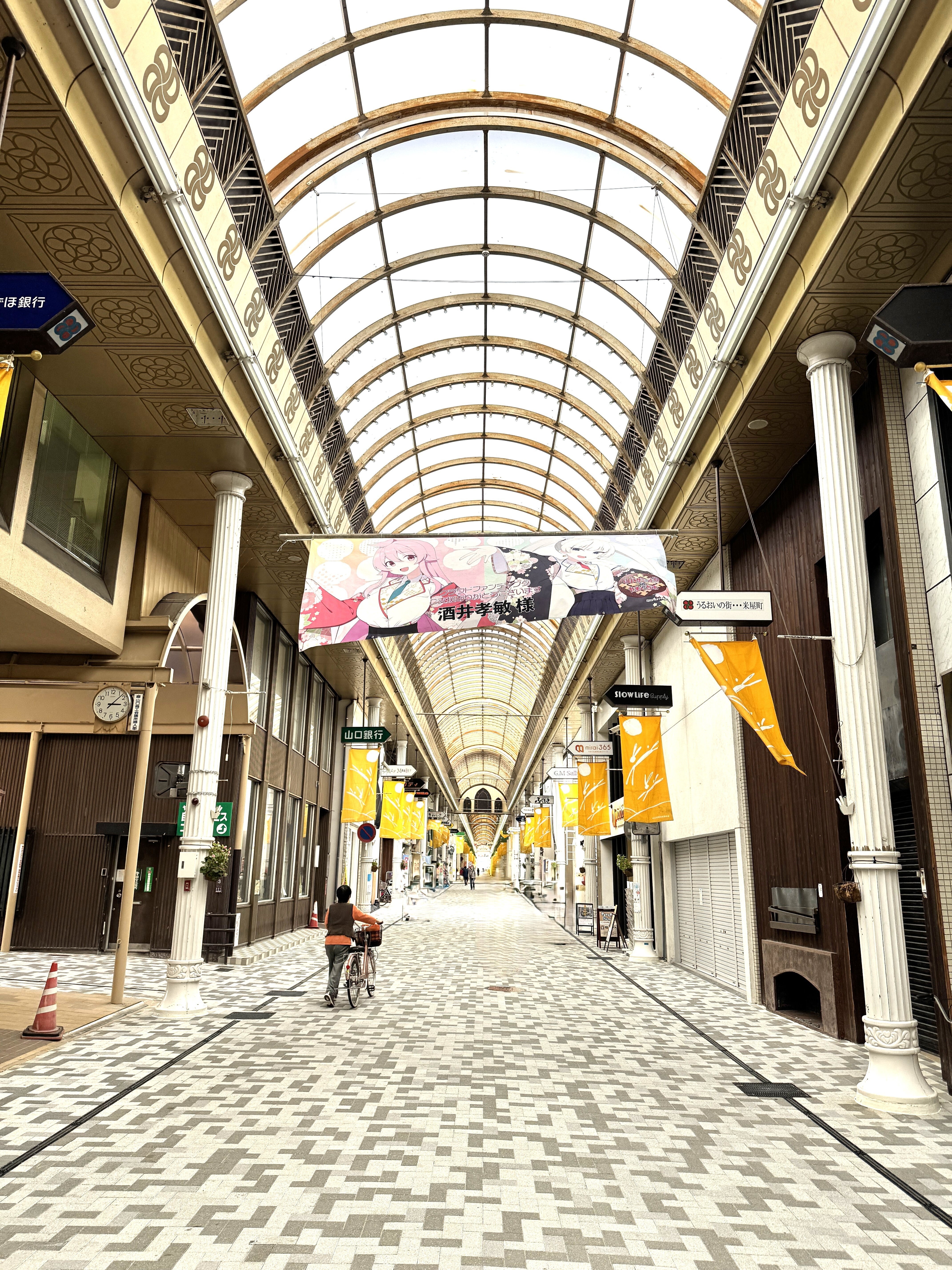 昨日、ご支援いただいた、タペストリーをいち早く、商店街に吊り下げてきました♬