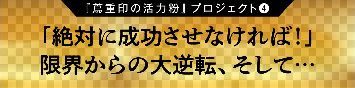 熱い想いを胸に秘めて悪戦苦闘する毎日の中でようやく見つけたナルコユリの供給元も、やはり原料は中国産のものしか見当たらない。吹き荒れる向かい風にさらされる中、ついに資金にも限界が…。