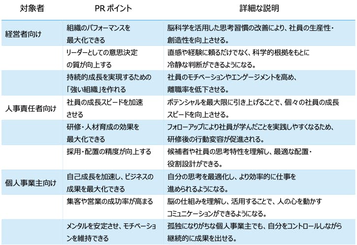 脳から⾒た⾃分⾃⾝の適切なアプローチ⼒を学ぶことでそれらを明確にできるため、具体的に実践することで成果が出しやすくなります。