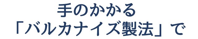 大量生産、機械生産が当たり前となっている現代に、今なお熟練の職人さんたちによる手作業が工程の大半を占めているのが、バルカナイズ製法です。日本語では「加硫釜製法」