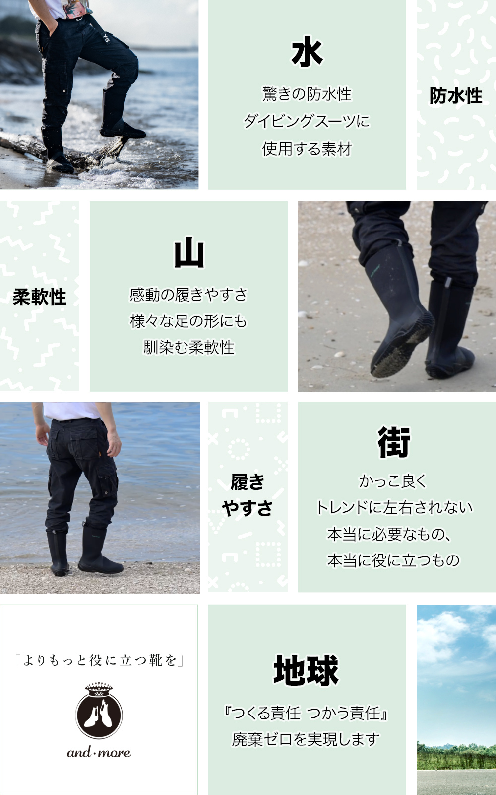 and・moreはコアなファンを世界中に増やし「この1足で完結」する防水シューズを目指しています。