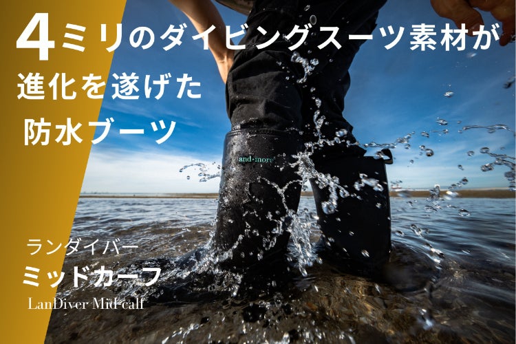 ランダイバーミッドカーフは、ランダイバーの流線型デザインを継承しつつ、見た目の美しさだけでなく、動きやすさと快適さ、履きやすさの面でも一切の妥協を許さない防水ブーツを目指しました