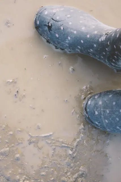 ぬかるみや水たまり、朝露に負けない防水ブーツ