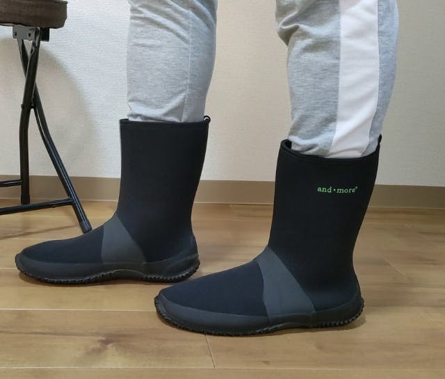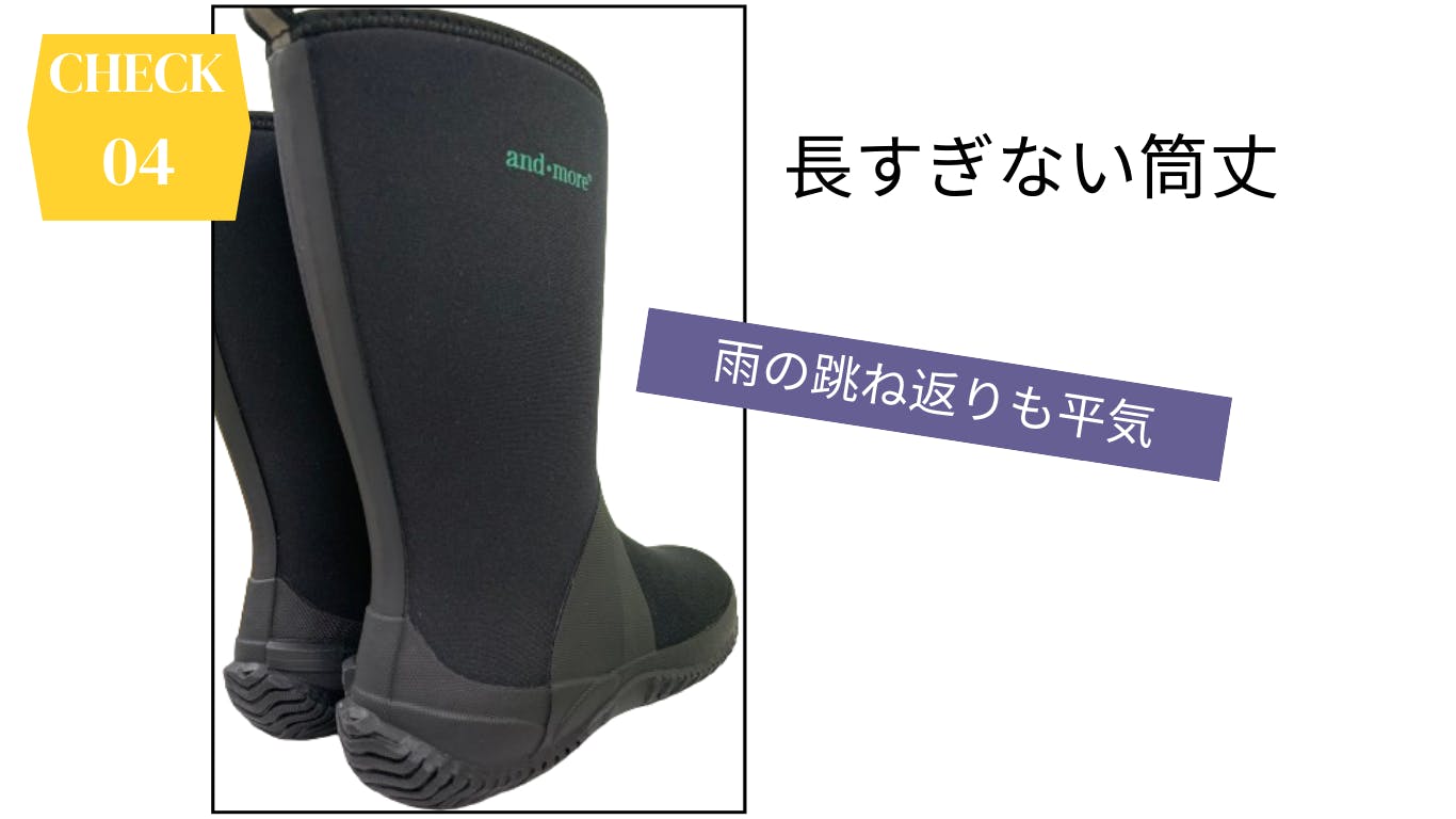 ふくらはぎの中間あたりの筒丈で、朝露も気にならない