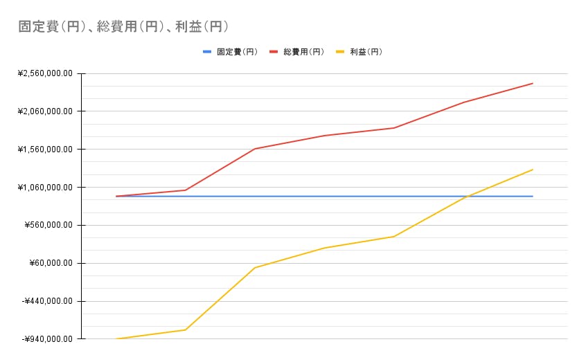 損益分岐点売上高 = 固定費 ÷ (1 - 変動費率) = 940,000 ÷ (1 - 0.4) = 940,000 ÷ 0.6 = 1,566,667円