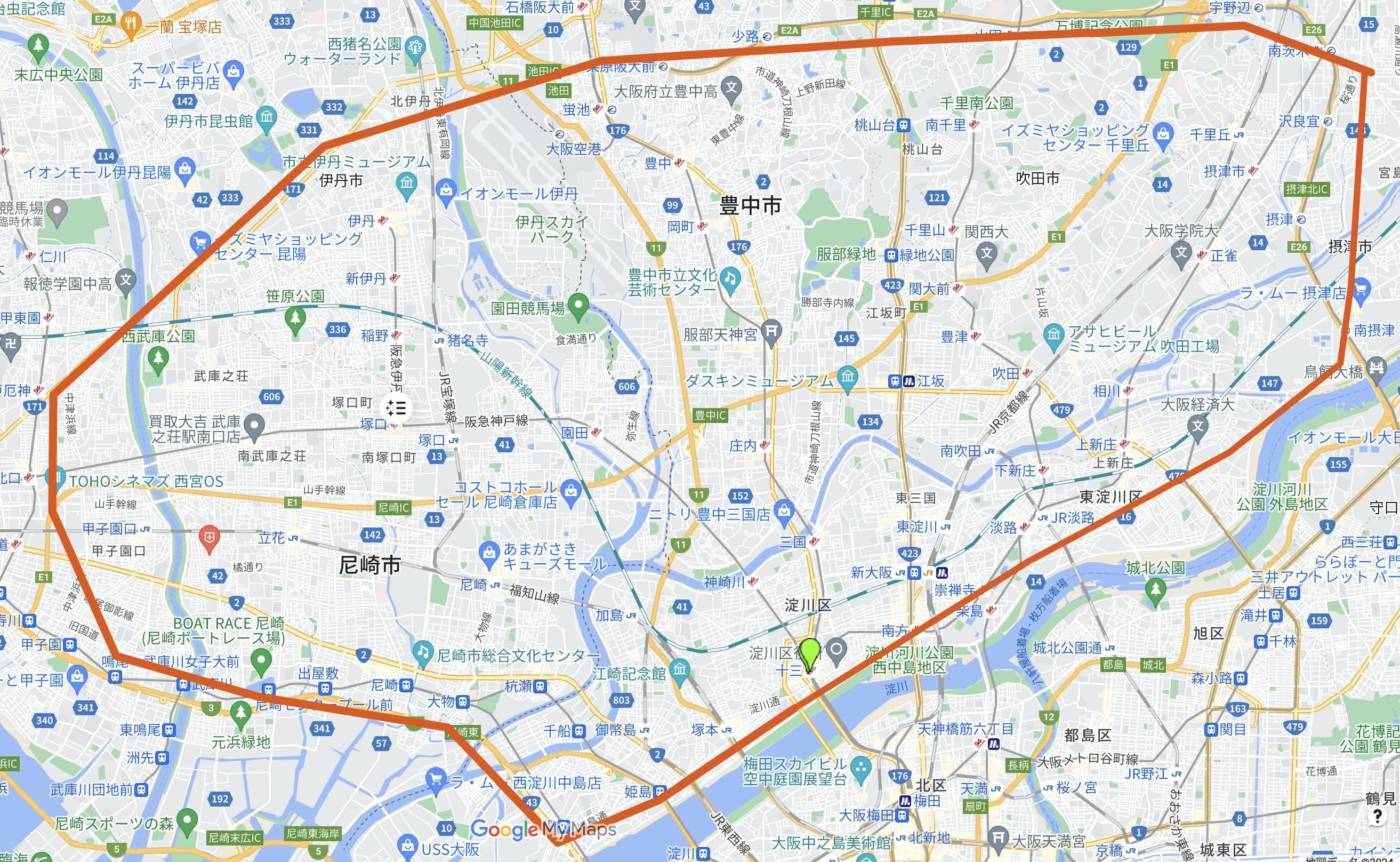 十三駅は神戸線・京都線・宝塚線が乗り入れるターミナル駅であり、大阪各地から至便なアクセスを誇ります。大阪梅田駅まで1駅で約4分、なんば駅まで約19分、駅近くには複数の商店街が続き、歓楽街として活気があります。SNSで拡散すれば大阪中からの集客が可能なエリアです。