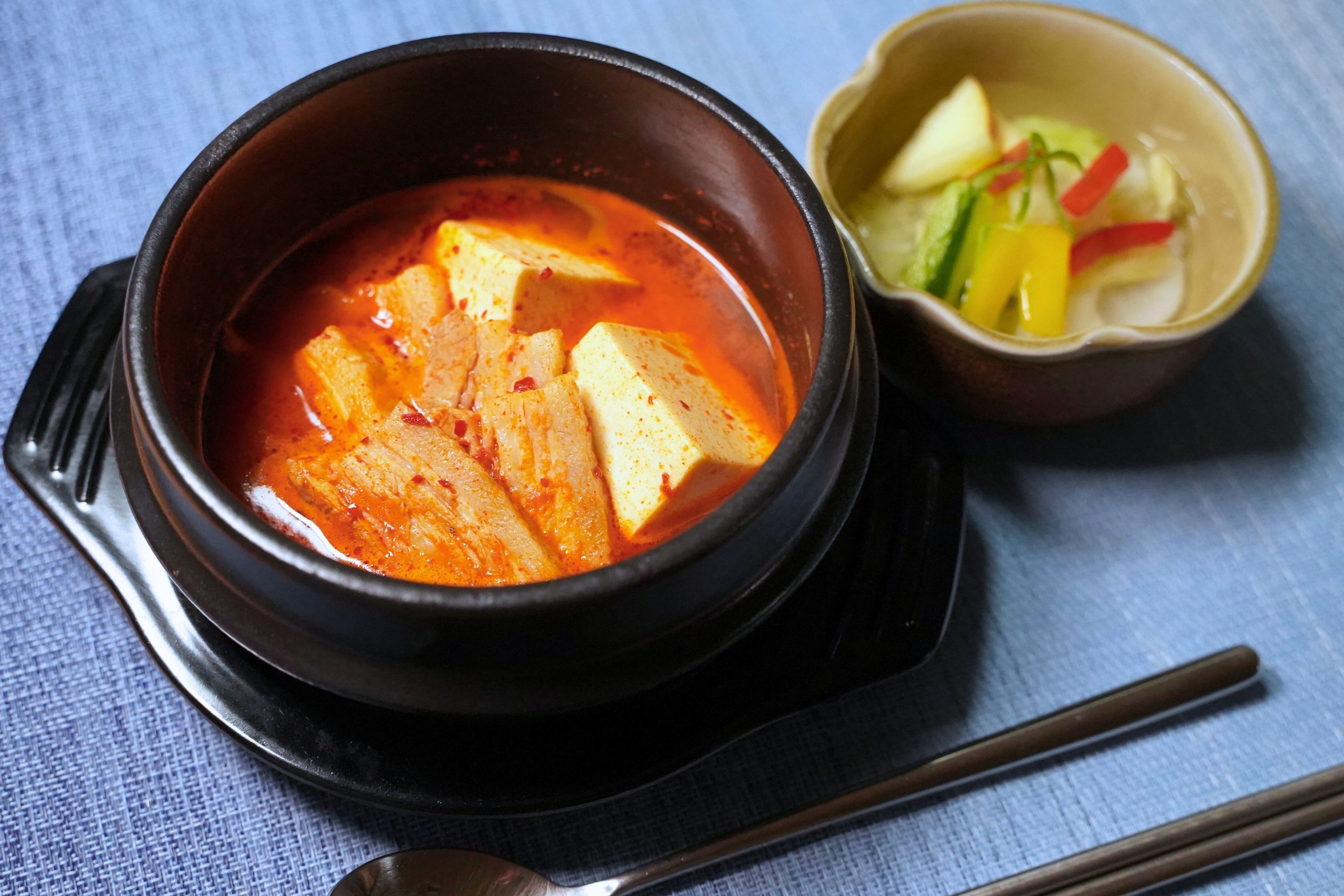 スンドゥブチゲと水キムチ