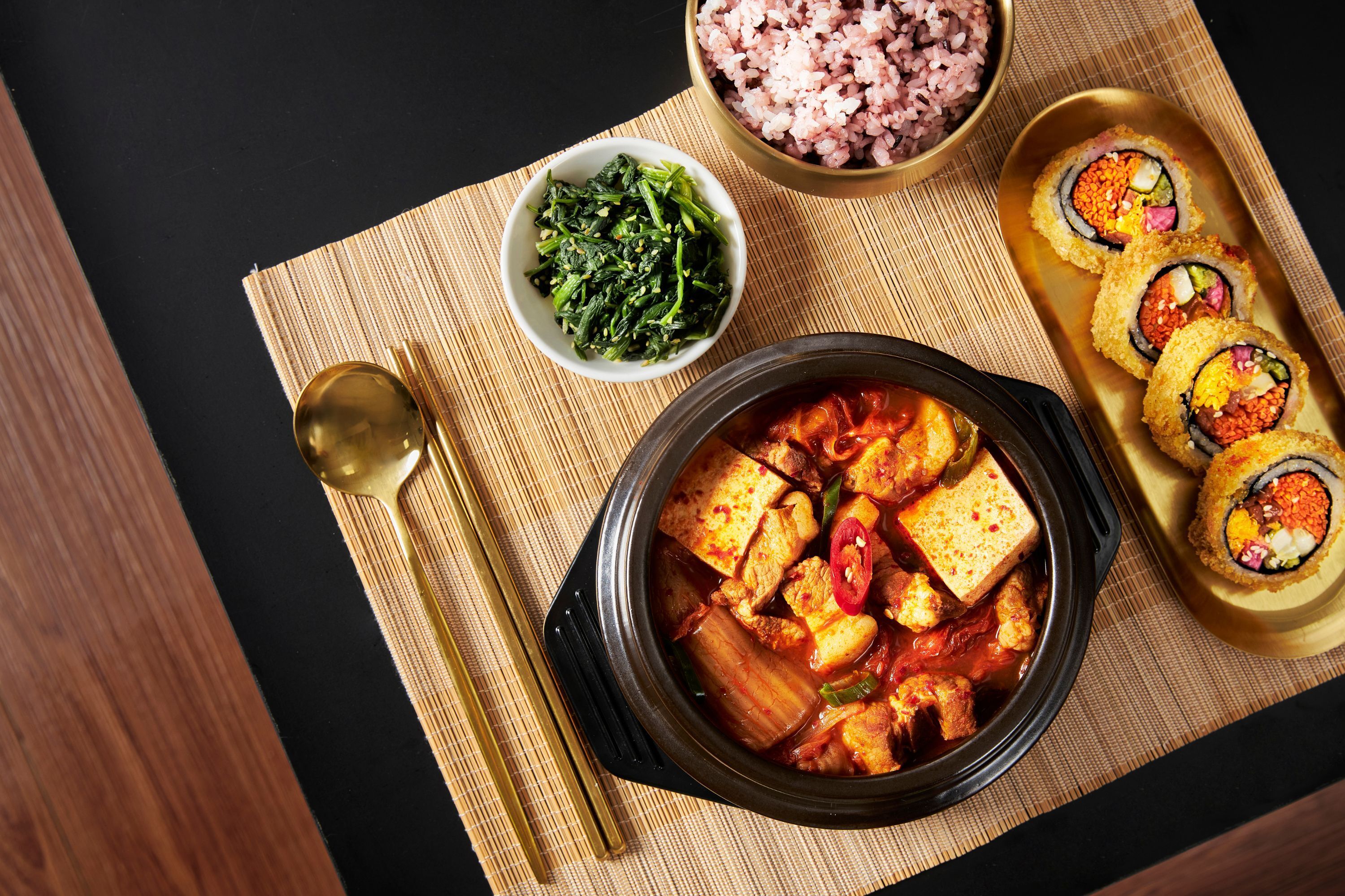 通販で大好評をいただいた「チゲスープ」は自家製キムチのタテギやコチュジャンをベースにコク深い味に仕上げています。新しいお店では本場韓国の食堂のように、水キムチやナムルなどのパンチャンを沢山盛りつけた付き出しをお楽しみいただきながら、メインのチゲをお待ちいただく形式で提供します。キムチやチゲが美味しいのはもちろんですが、「ごはん」にもこだわった美味しいお店にして参ります。