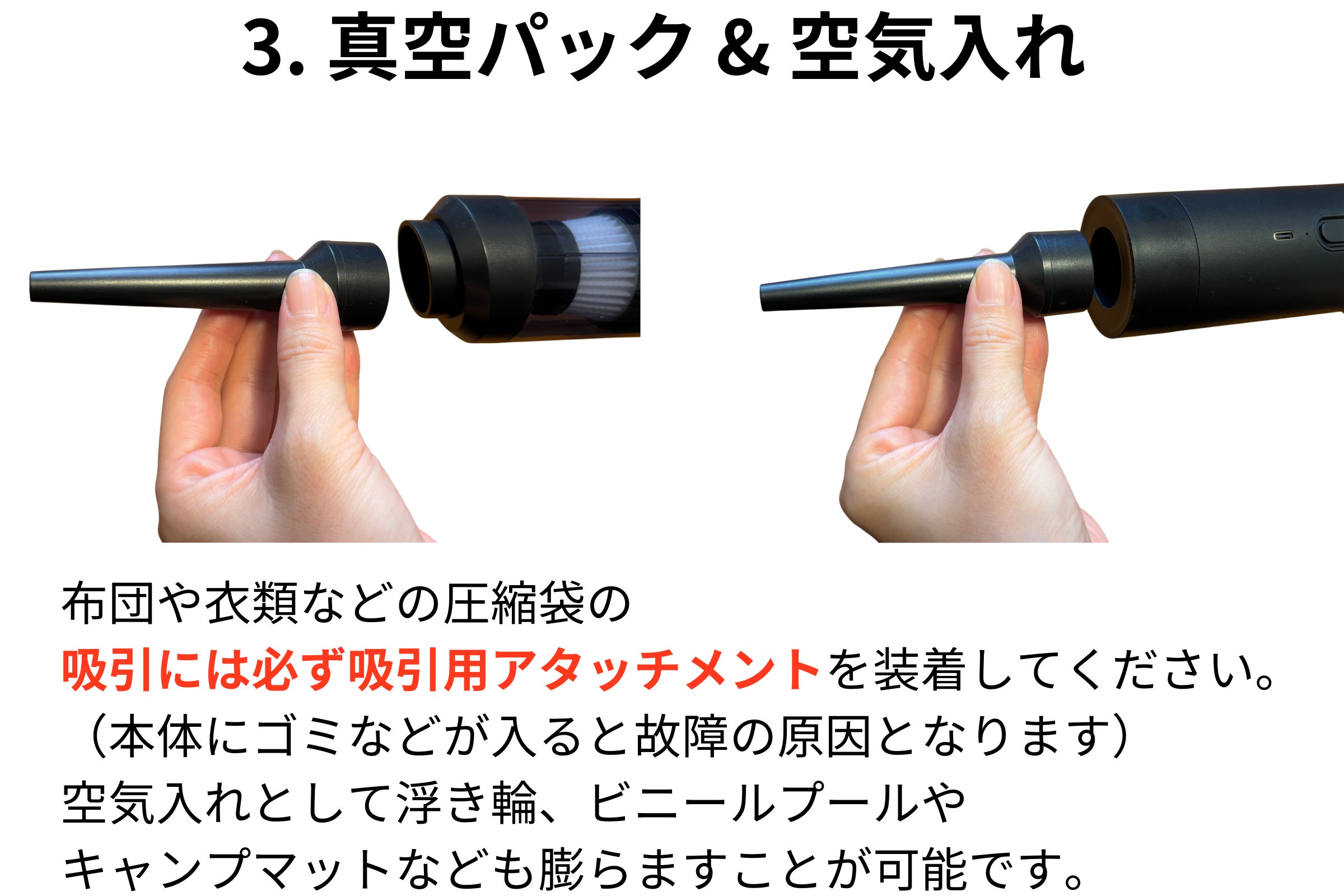 食品や衣類・布団袋の圧縮にも