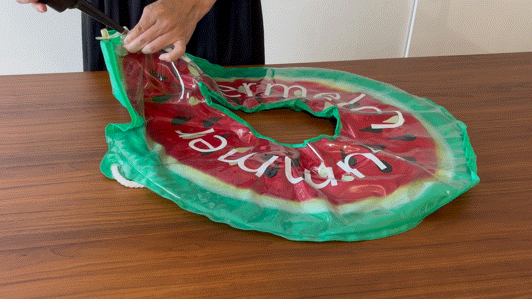 意外と時間がかかる浮き輪の空気抜きもわずか数秒でペッタンコ!