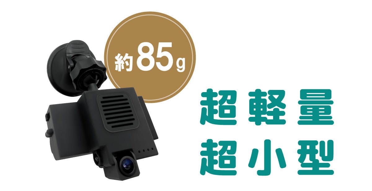 ドラレコ本体にモニターがないので、約85gという軽量化と、最長約8cmという小型化が実現できました。