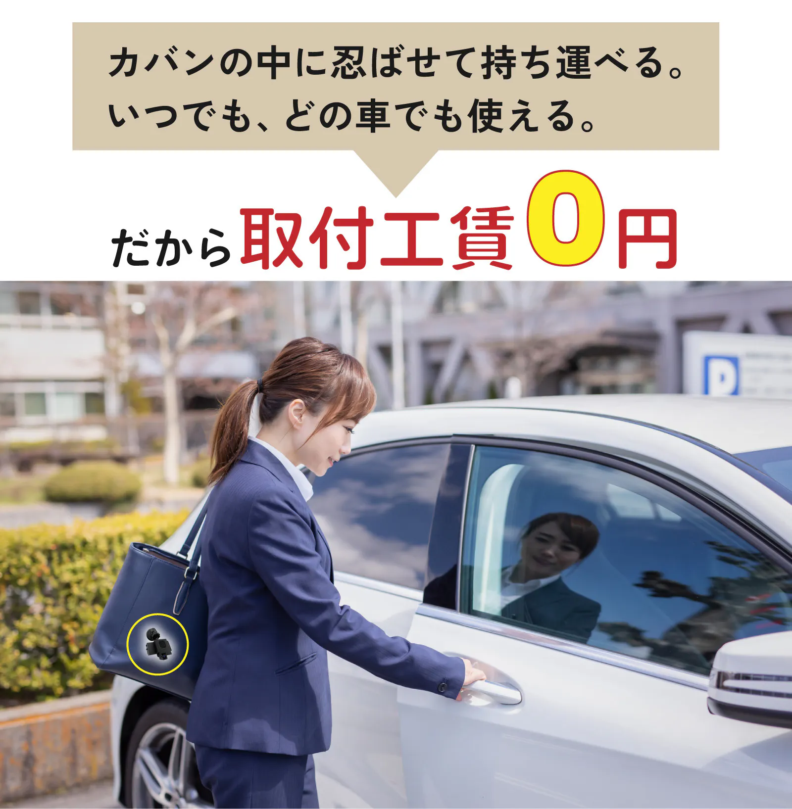 配線不要で簡単に”ペタッ”と設置できるので、旅行先や出張先でレンタカーやカーシェアを利用する時に最適です。軽量・小型なので、カバンに入れても邪魔にならず持ち運びも楽々で荷物になりません。必要な時に”ペタッ”と貼り付け、取り外しも簡単です。