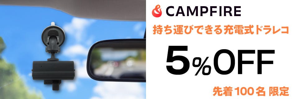 2024/11/13 16:21初めまして。ブロードウォッチです。この度は、電源・配線工事不要で”ペタッ”と貼り付け!持ち運びできる充電式ドライブレコーダーをご覧いただき、誠にありがとうございます。「ペタッと貼るだけで使えるドライブレコーダー」はシリーズ展開しており、これまでの製品もたくさんの方からご支援を頂き、好評発売中です!今回は、”ペタッ”と貼り付け!持ち運びできる充電式ドライブレコーダーです。本製品は、電源も要らない、配線も要らない、充電して持ち運びもできる、ペタッと貼るだけのドライブレコーダーです。まだドライブレコーダー導入されていない方、ドライブレコーダー導入したいがいろいろと迷われている方、煩さをすべて取り払った画期的なドライブレコーダーを導入してみませんか?campfire購入者限定!5%OFFクーポン配信中!今回、campfire限定で、先着100名様に使える5%OFFクーポンを配信中です。使い方はカンタン、下記のURLからご支援いただくだけです。※決済画面でクーポンの選択をお忘れなきようご注意ください!https://camp-fire.jp/projects/801191/view?ctoken=wi8s4gvSQIMe9b6fお知合いもシェアや拡散などもOKです! 上記URLからであれば5%OFF使用できますのでURLをコピーしてシェアしてみてください♪皆さまからのご支援をお待ちしております! もっと見る