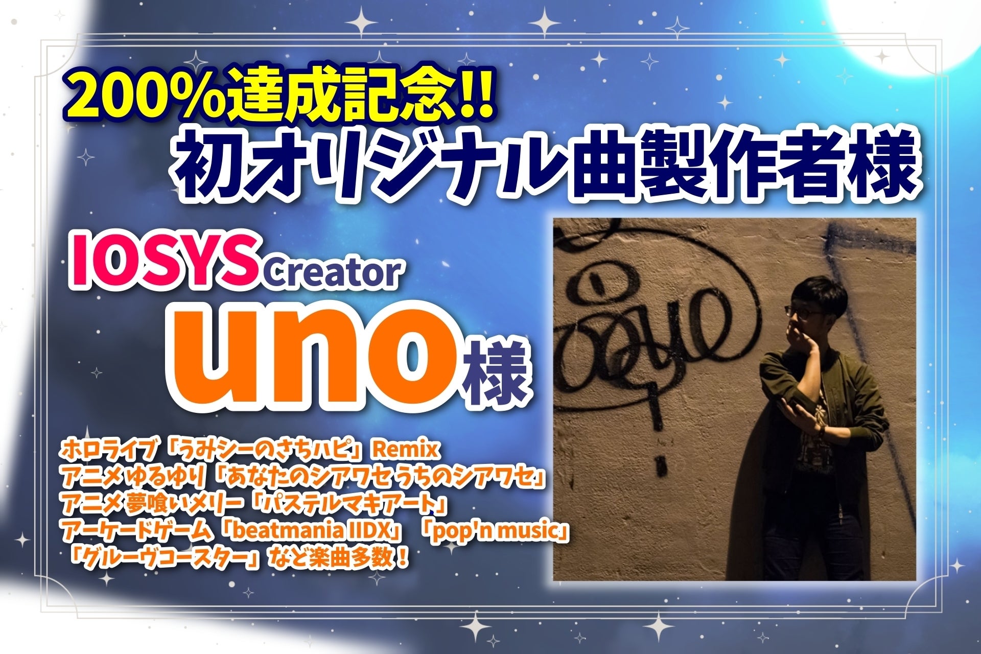 ご支援額も200%を超え、ちあももこ初のオリジナル曲の制作をお引き受けくださる方が決まりました!IOSYSのuno様にご縁をいただきました!uno様は、憧れのホロライブさんの楽曲のRemixもご担当されているすごい方なのですが、他にもアニメのキャラクターソング(橘勇魚(CV:茅野愛衣さんだあ!)やアーケードゲームへの楽曲提供は書ききれないほど…!「beatmania IIDX」「SOUND VOLTEX」「pop'n music」「グルーヴコースター」はゲームに疎い私でもわかるほど…他にもたっくさんすごい作品だらけなので、きっと私以上にこの熱さを理解ってくださる方は多いと思います。↓こちらのアーティスト情報リンク見てみてください♪ https://www.iosysos.com/creator-uno.html作詞もご担当いただく方が決まりましたので、また追ってお知らせさせていただきます。このプロジェクト終了まであと1ヶ月…‼︎オリ曲作成のストレッチゴール200万円達成まで、どうぞよろしくお願いいたします‼︎