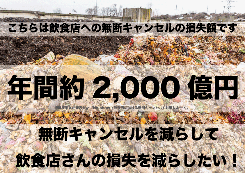 現在、飲食店への無断キャンセルは日本国内で約2000億円と言われております。