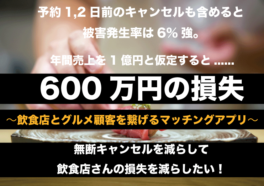 そんな中で飲食店への損失を少しでも減らすには、グルメが好きな顧客にダイレクトに伝えることだと思っております。
