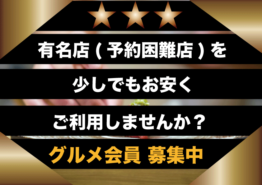グルメ会員は予約困難店に行ける可能性があり、もしかしたら割引制度でお安くなる可能性もございます。