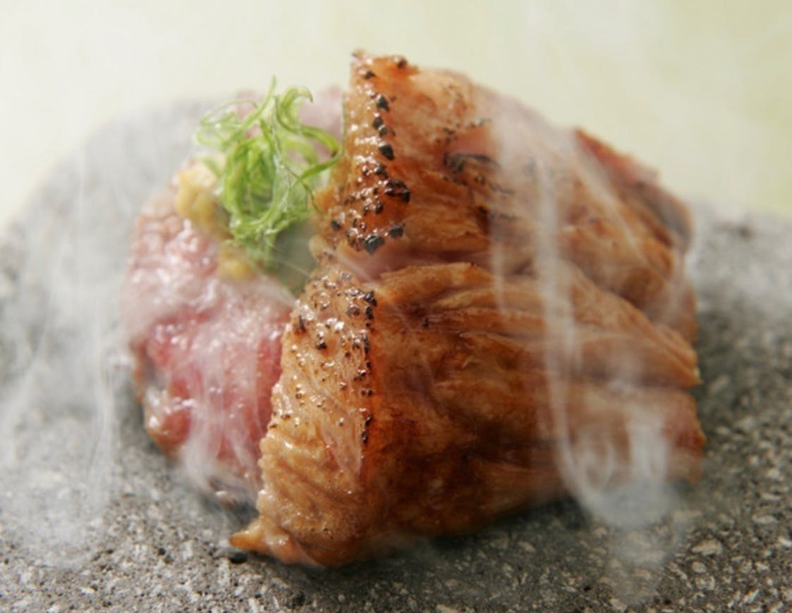 ③骨つき本鮪トロヒレ炙り香味野菜添え(美味出汁特製タレ)