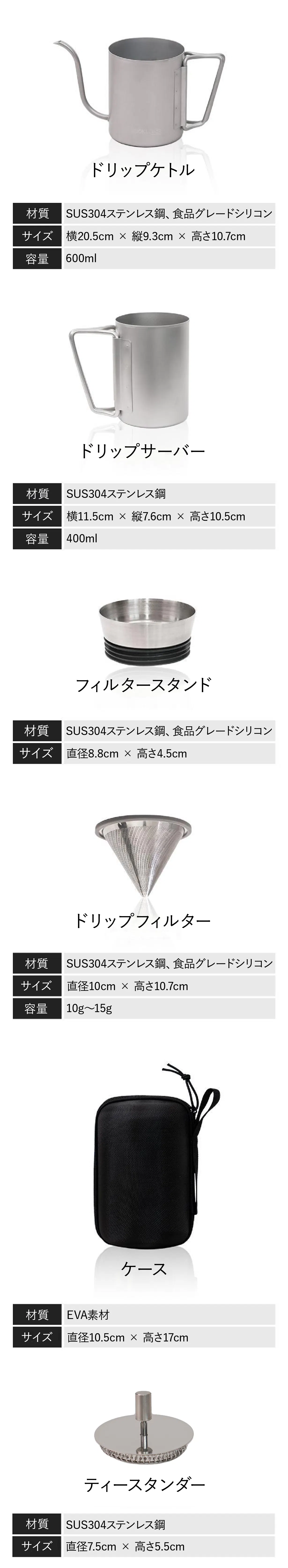 そこで出会ったのがこのOutdoor Drip Setでした。どこに行くときも場所を取らず、全てが一つのケースに入っているので、忘れ物もしない。コーヒーに力を入れている商品ですが、お茶も美味しく飲めて、期待以上の結果を出してくれる商品です。