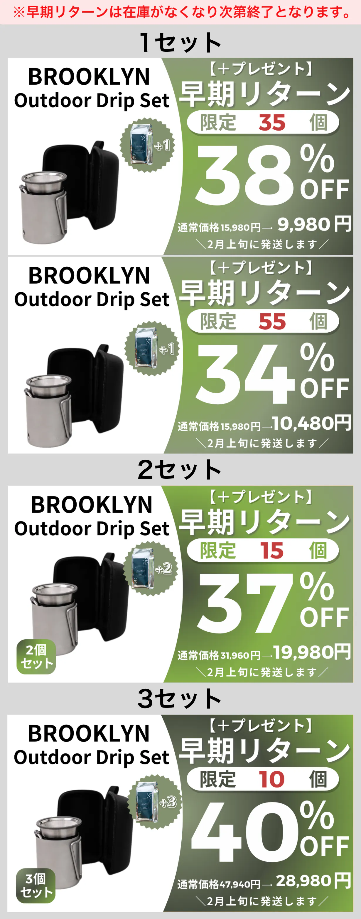 ※早期リターンは在庫がなくなり次第終了となります。