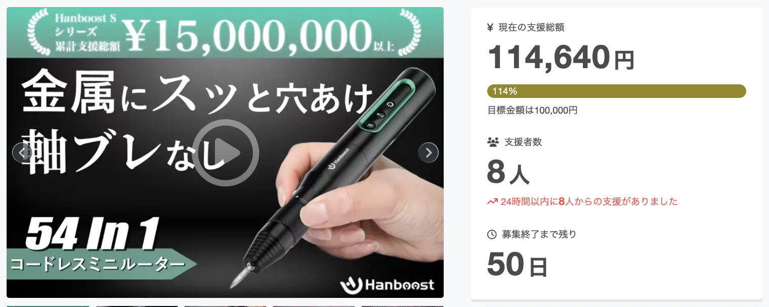 この度は「累計1100支援以上◎切る・彫る・磨く・穴あけがこれ1つ!多機能なミニルーター!」に支援頂き誠にありがとうございます!お陰様で、開始から7時間経たずに10万円の目標金額を100%達成することができました。ご興味のある方、ぜひ支援お願い致します。https://camp-fire.jp/projects/801291/viewBrightチームは、当プロジェクトをもっと多くの方に知っていただきたいと考えております。よかったら、FacebookやTwitter等のSNSでのシェア・拡散をお願い致します。#brightdiyどうぞよろしくお願い致します。Brightチーム
