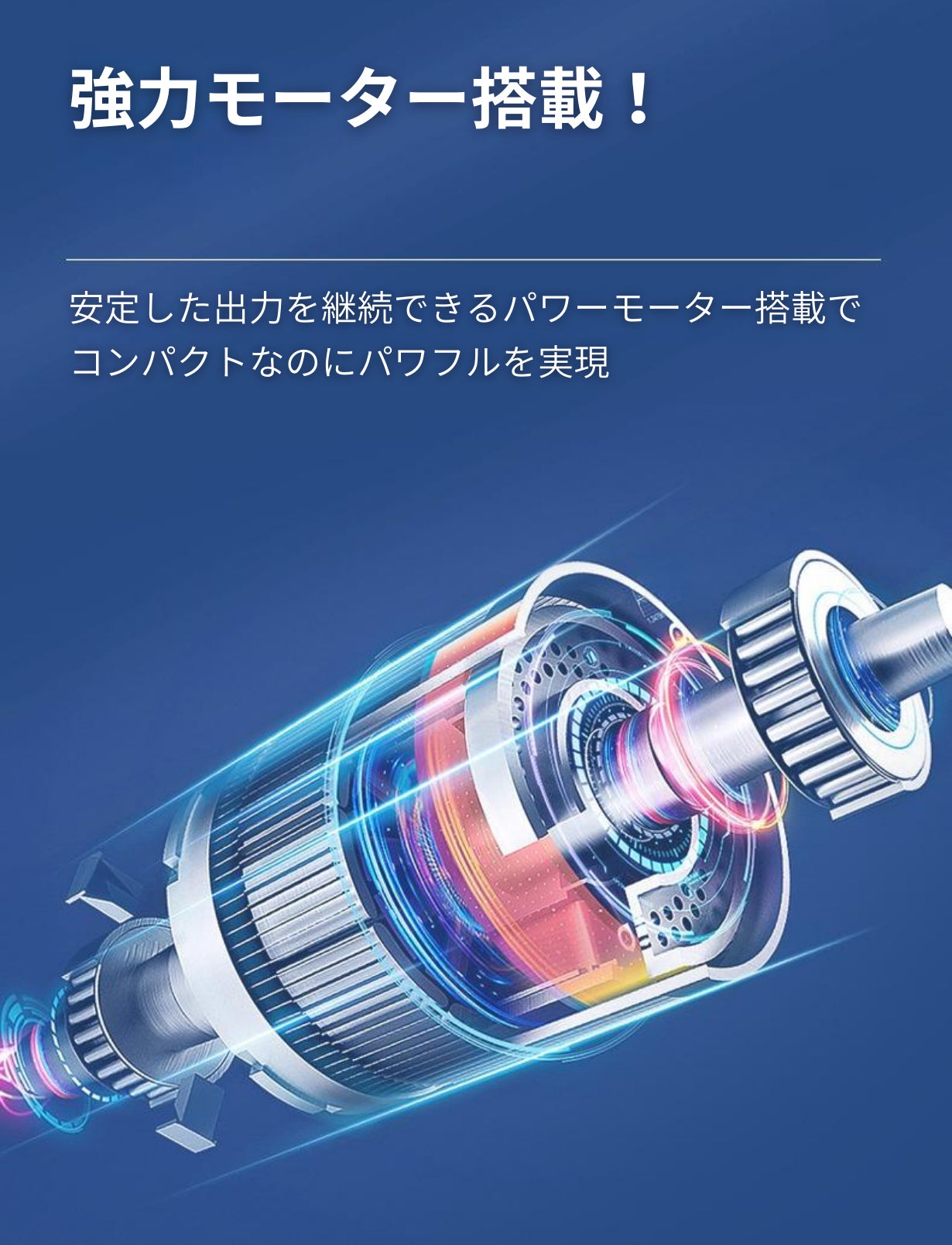 軽量コンパクトなのに安定性の高い強力モーター搭載!