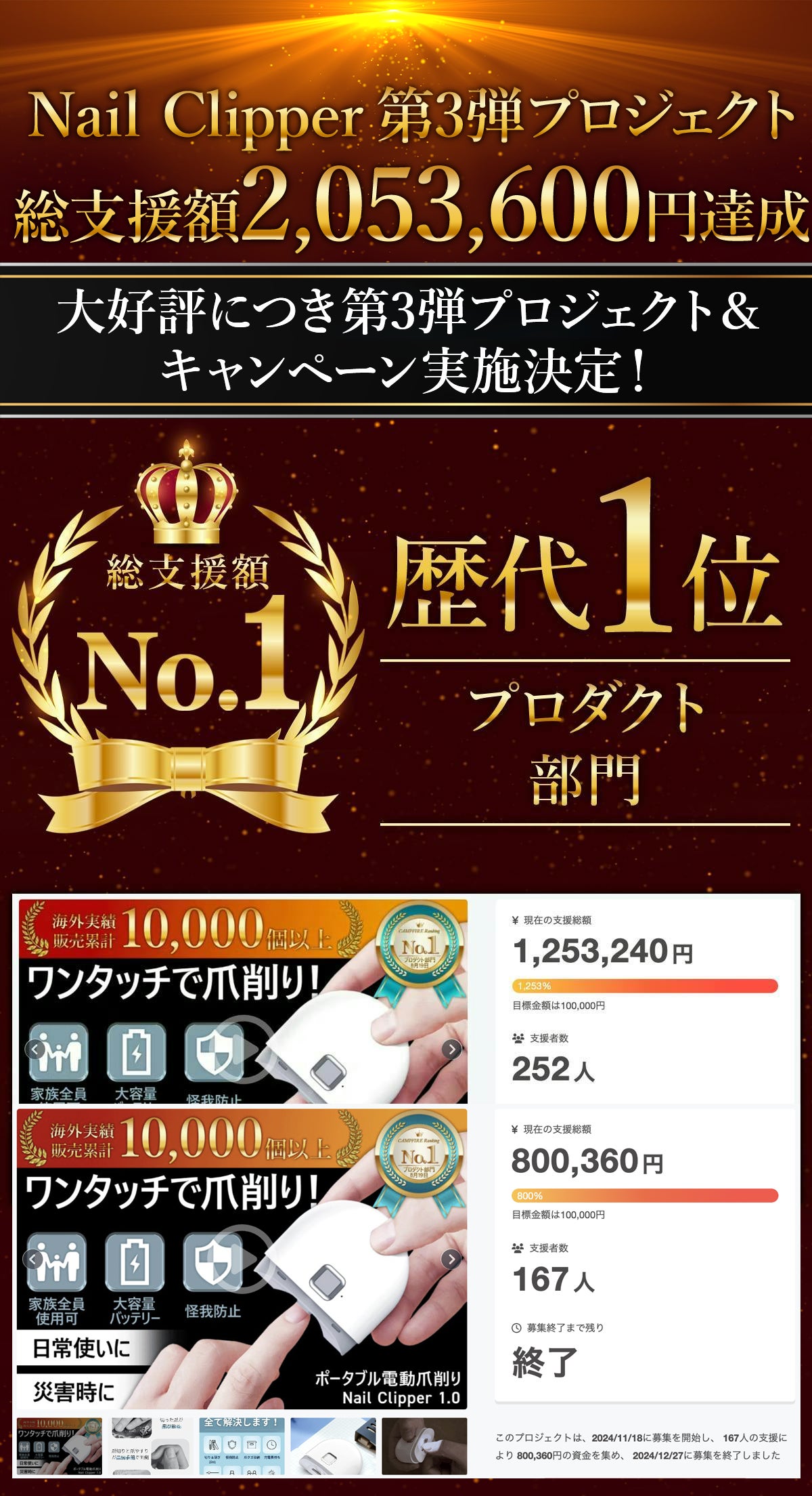 ※想定を上回る皆様から支援を頂き、量産体制を更に充実させることができた場合、一般販売価格が予定価格を下回る可能性がございます。