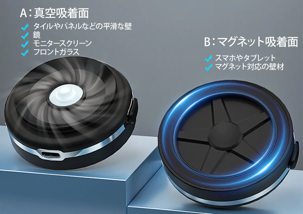 吸着面はそれぞれ設置場所や状況に応じて使い分けが可能だから利用シーンに柔軟に対応できて便利です!