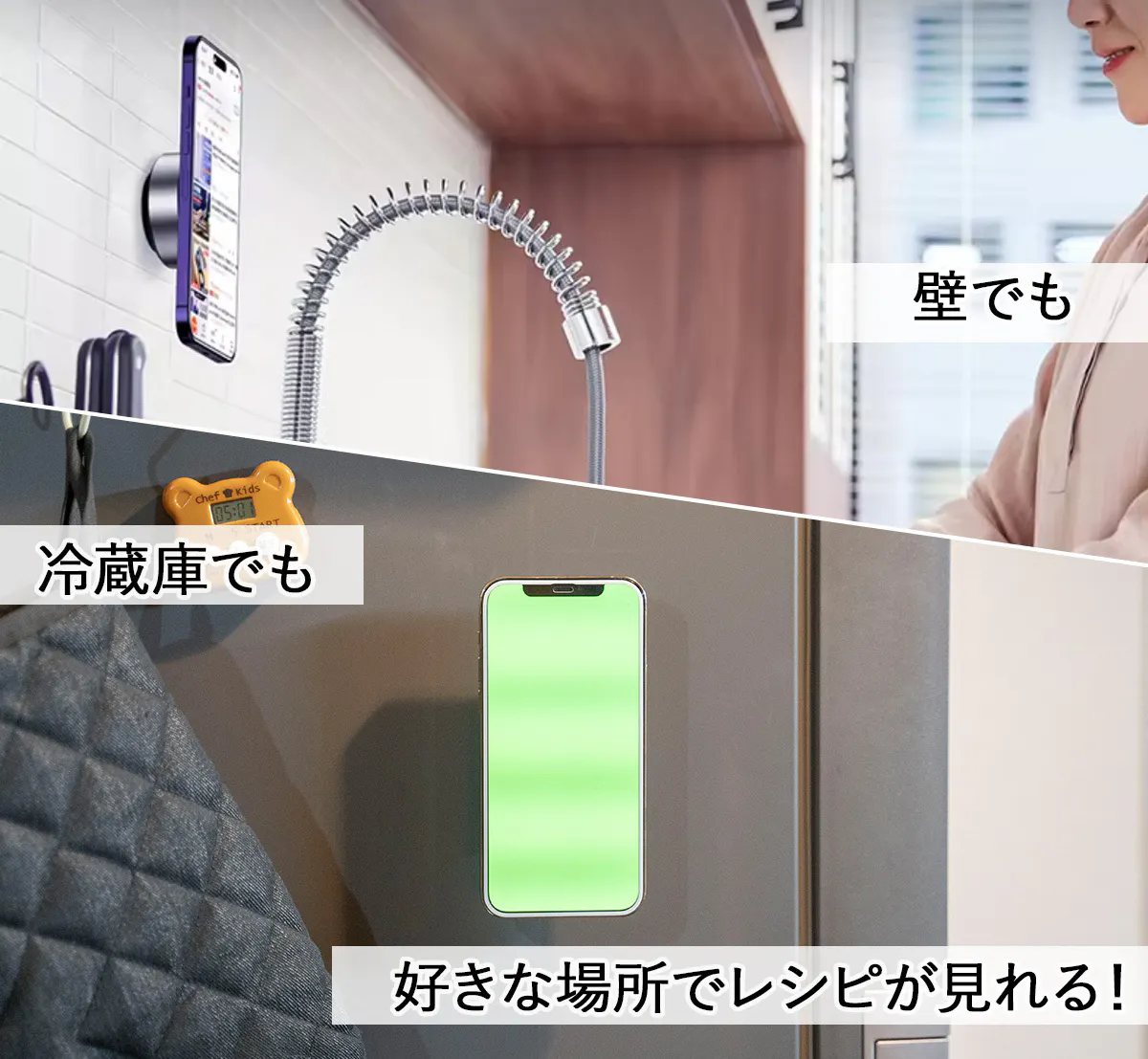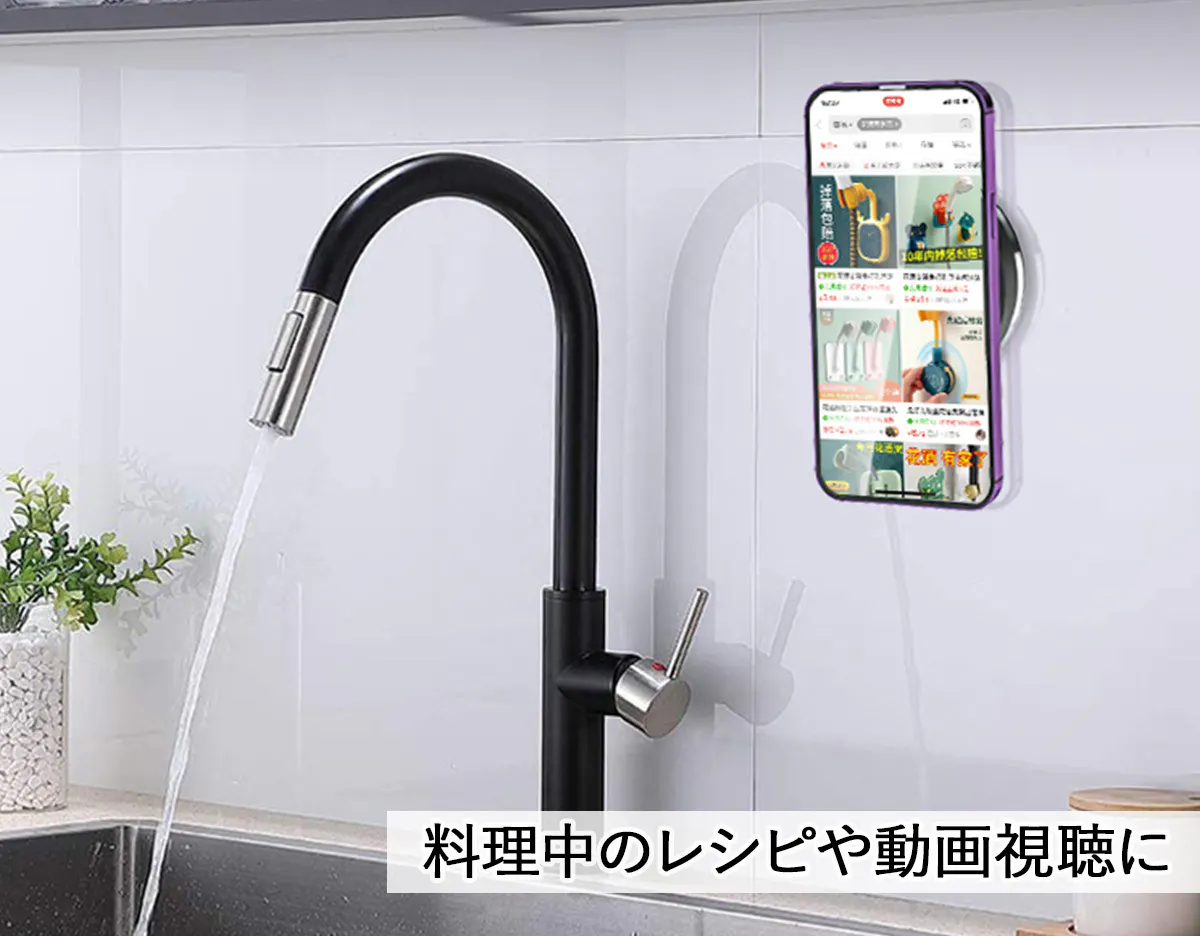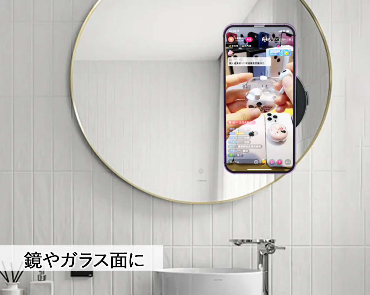 鏡にも設置可能なのでドライヤーや歯磨き、セットやメイクをしながら動画を見ることも可能です!