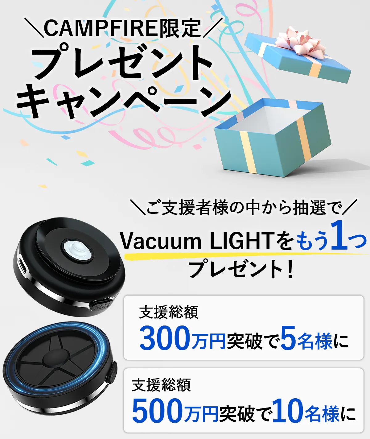 ご支援者様の中から抽選で当たった方に、なんとVacuum LIGHTをもう1つプレゼント!!