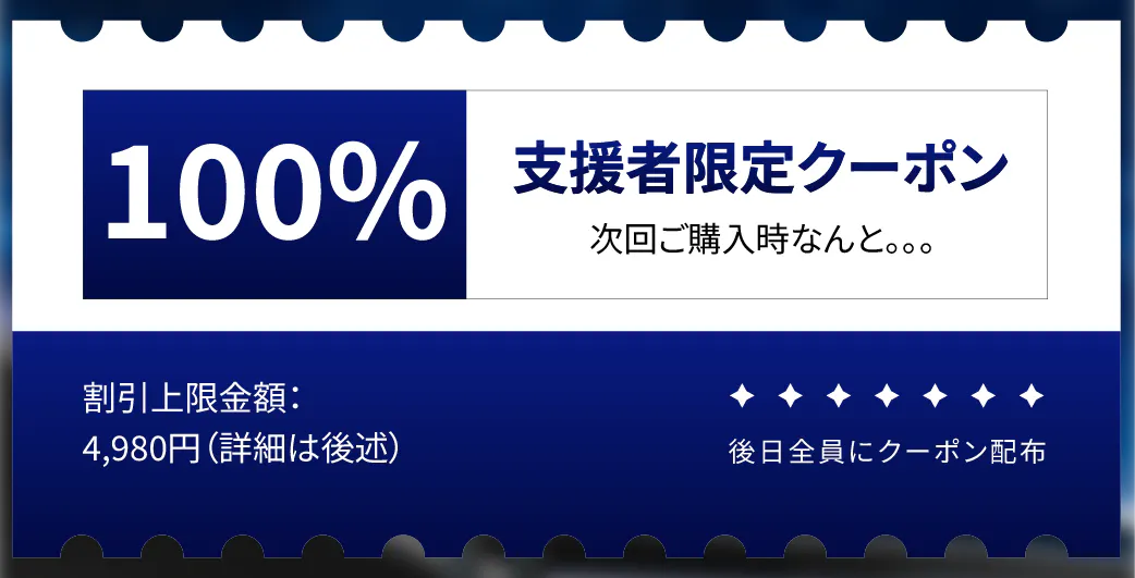 ※支援者様へのクーポン送付時に明記させていただきますので、ご安心ください。