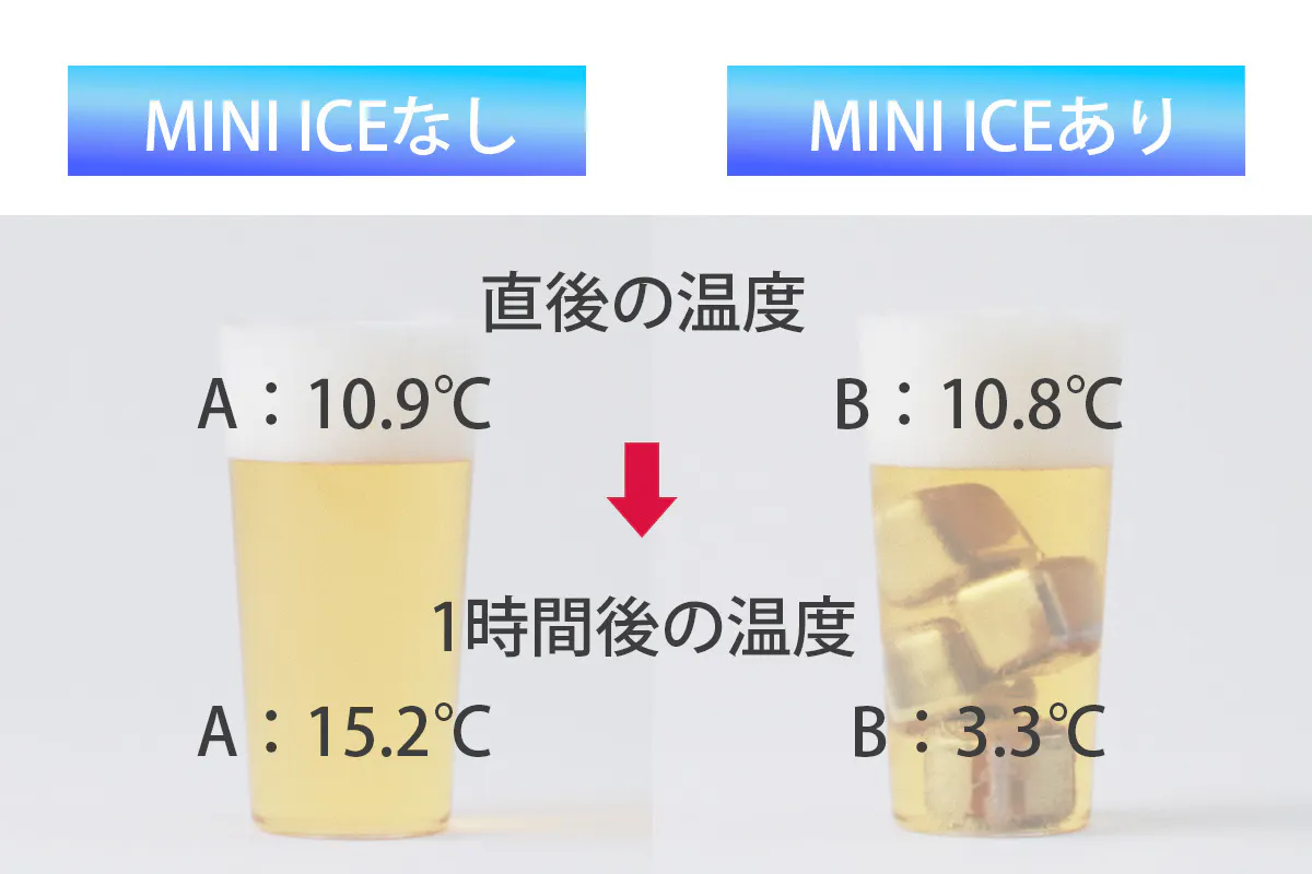 MINI ICEならぬるくならないうちに・氷が溶けないうちに急いで飲まなくても大丈夫!