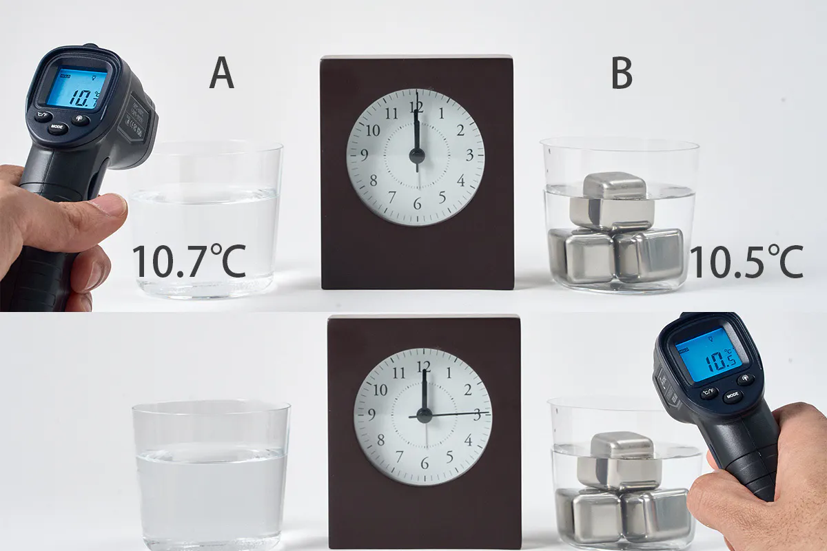 まずはAのビールはMINI ICEなし、BにはMINI ICEを入れて温度を実測。